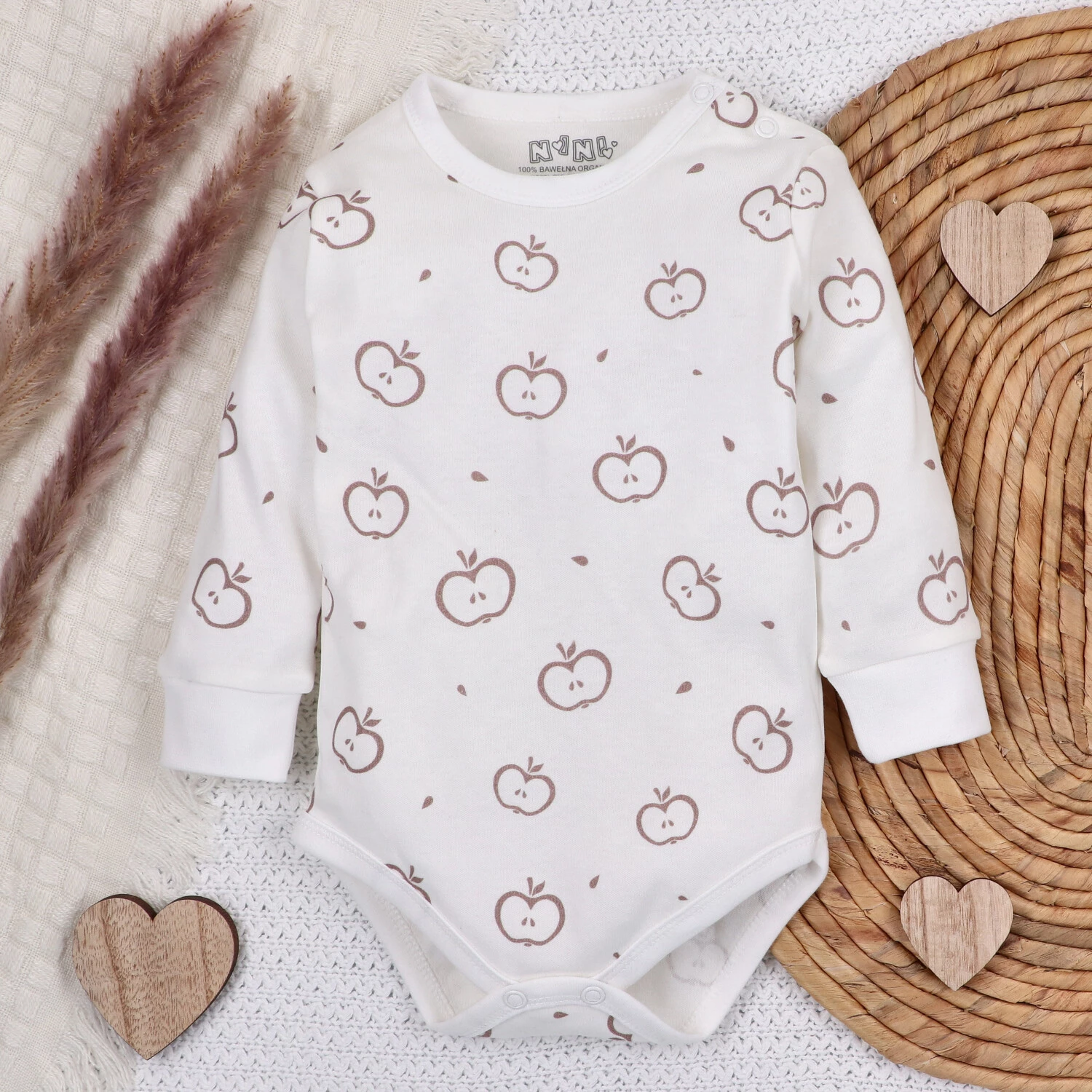 Body niemowlęce Happy Apples z bawełny organicznej długi rękaw