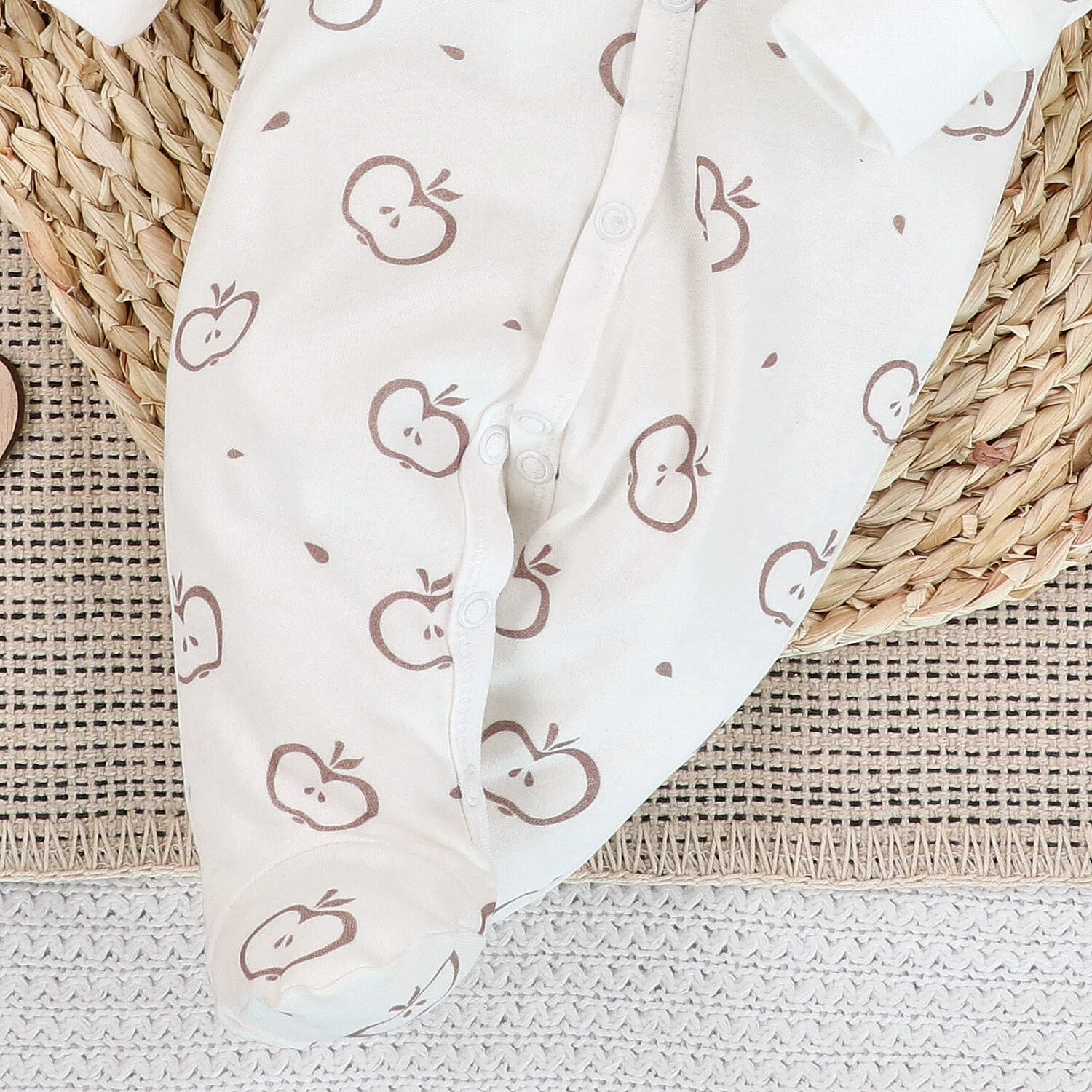 Ten uroczy pajacyk z kolekcji Happy Apples to świetna propozycja dla rodziców, którzy stawiają na jakość, bezpieczeństwo i ekologiczne podejście. Ubranko zostało uszyte w Polsce z miękkiej, organicznej bawełny, pozyskiwanej w zrównoważony sposób – bez pestycydów, chemikaliów i sztucznych nawozów.