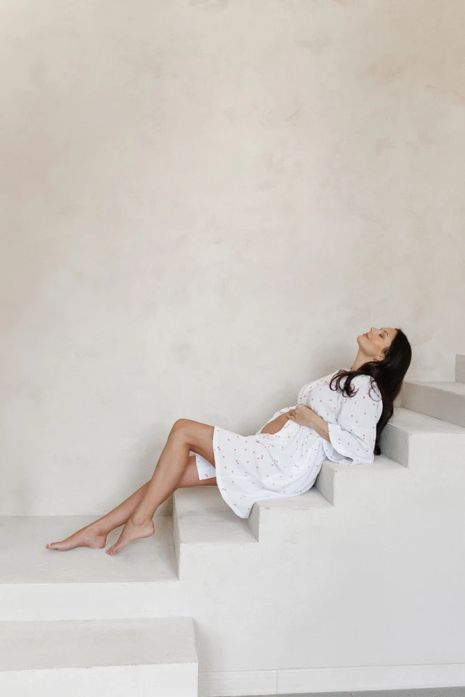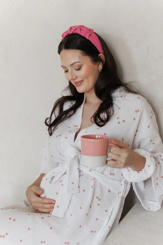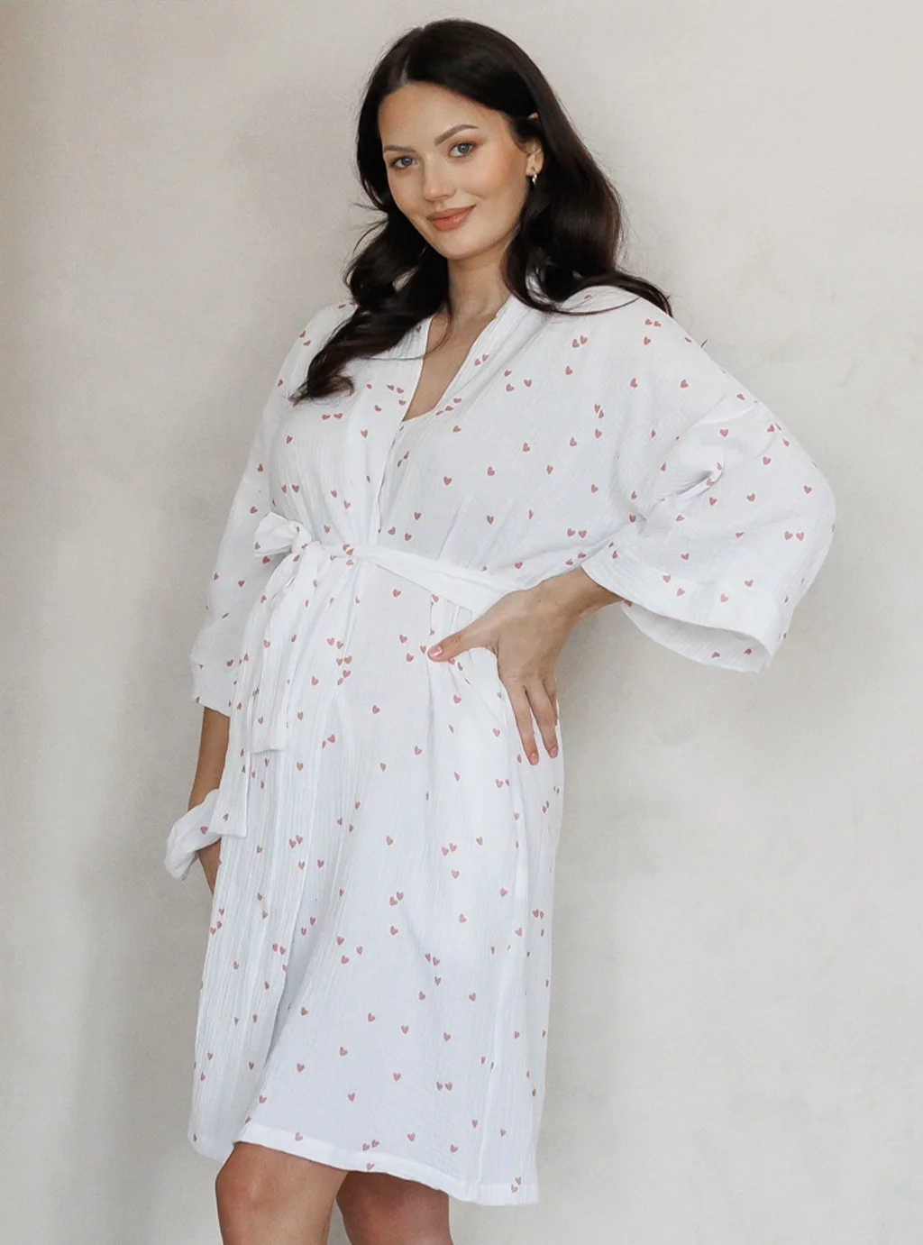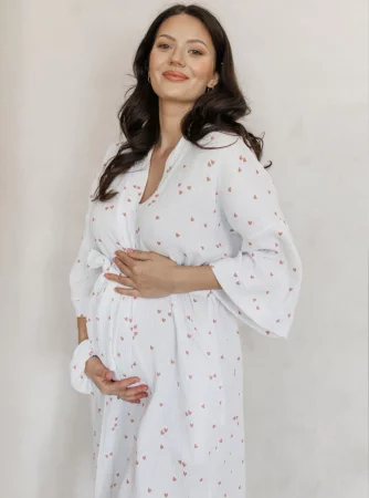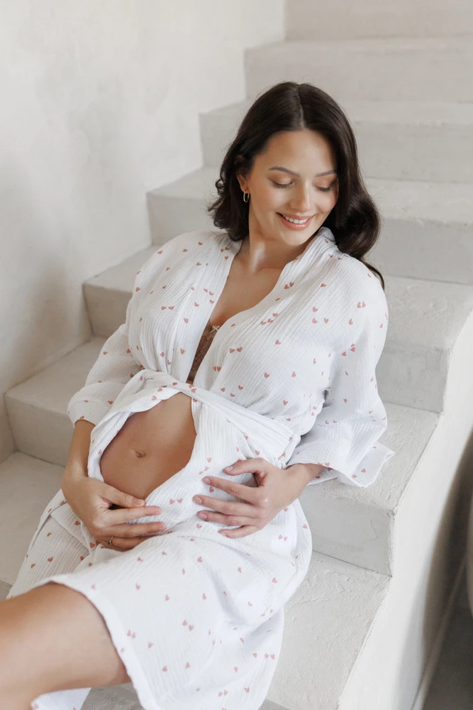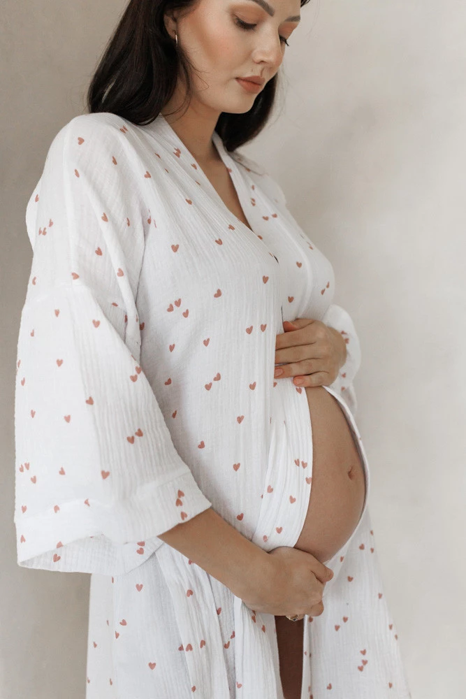 Szlafrok muślinowy SERCA – idealny szlafrok ciążowy i do karmienia