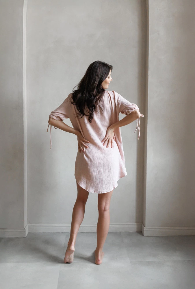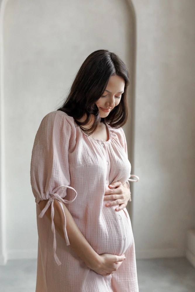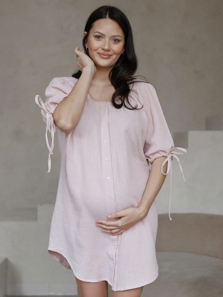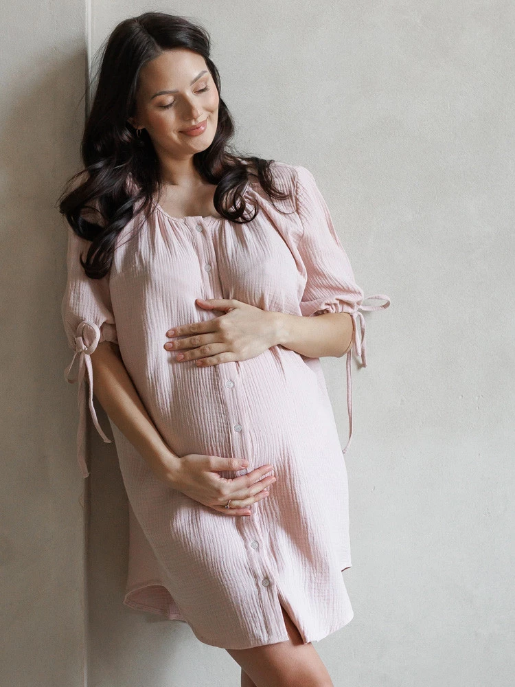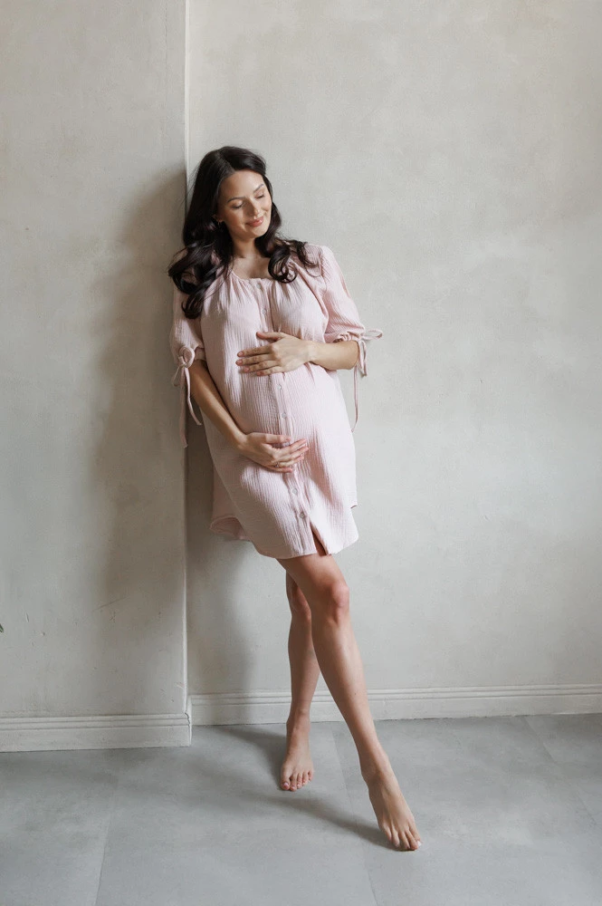 Muślinowa koszula sukienka ciążowa do porodu i karmienia OAT latte - Różowa
