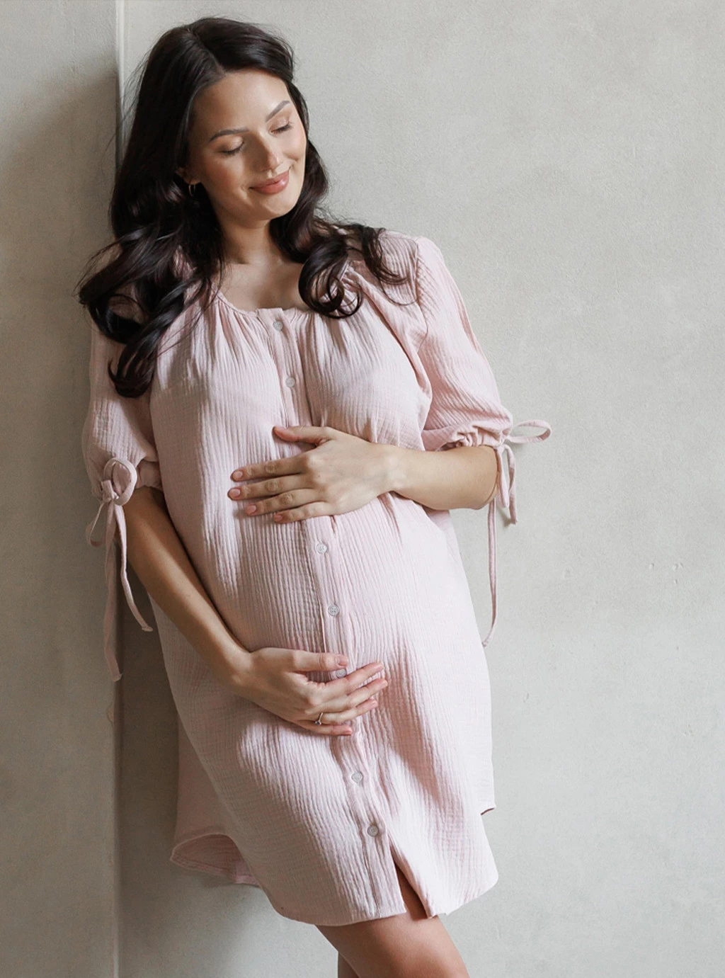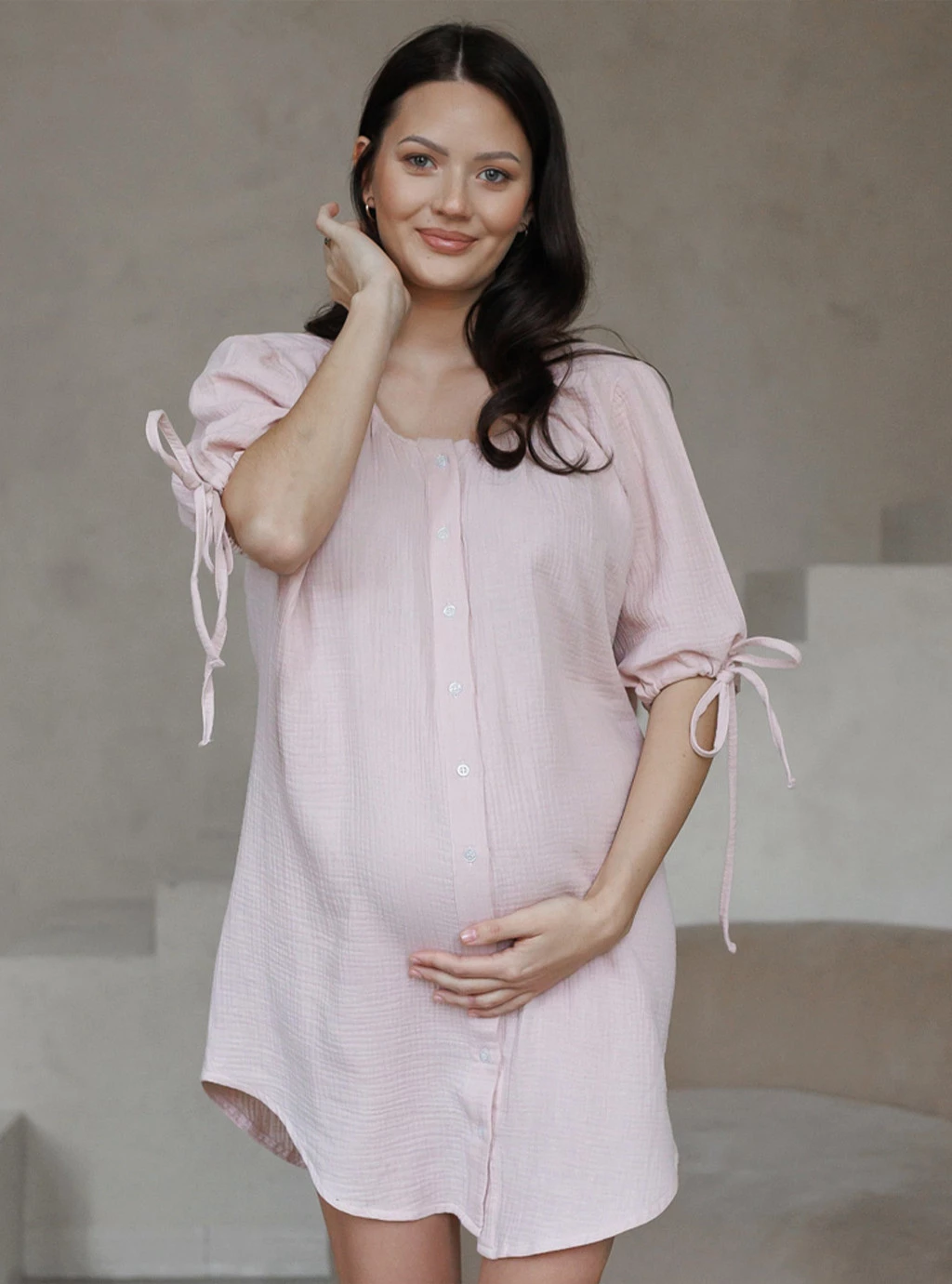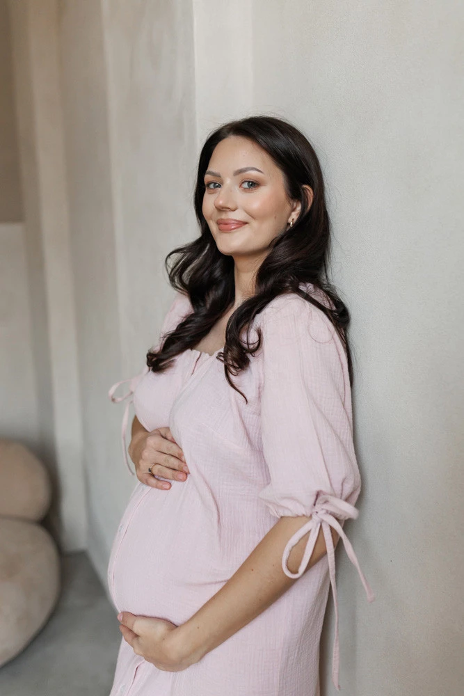 Muślinowa koszula sukienka ciążowa do porodu i karmienia OAT latte - Różowa