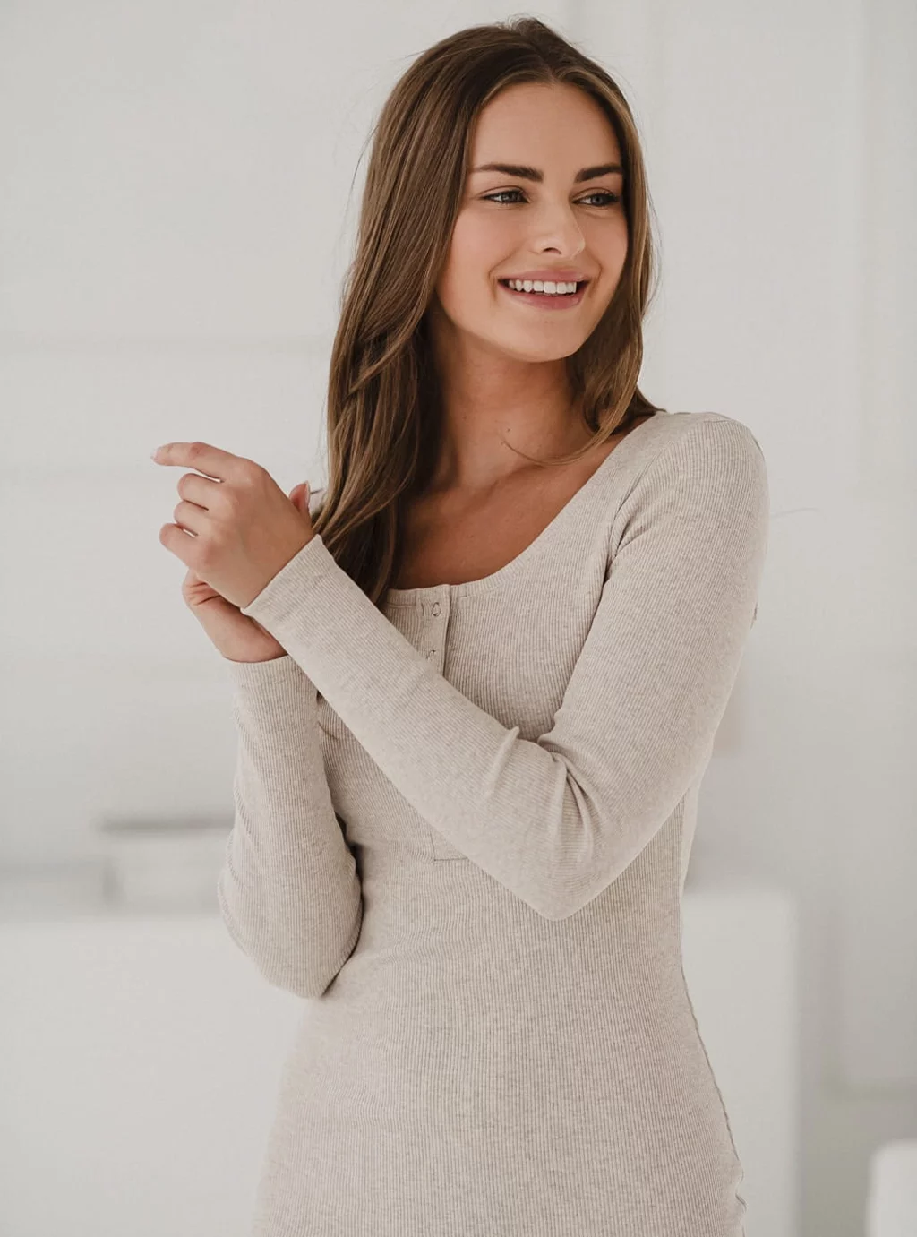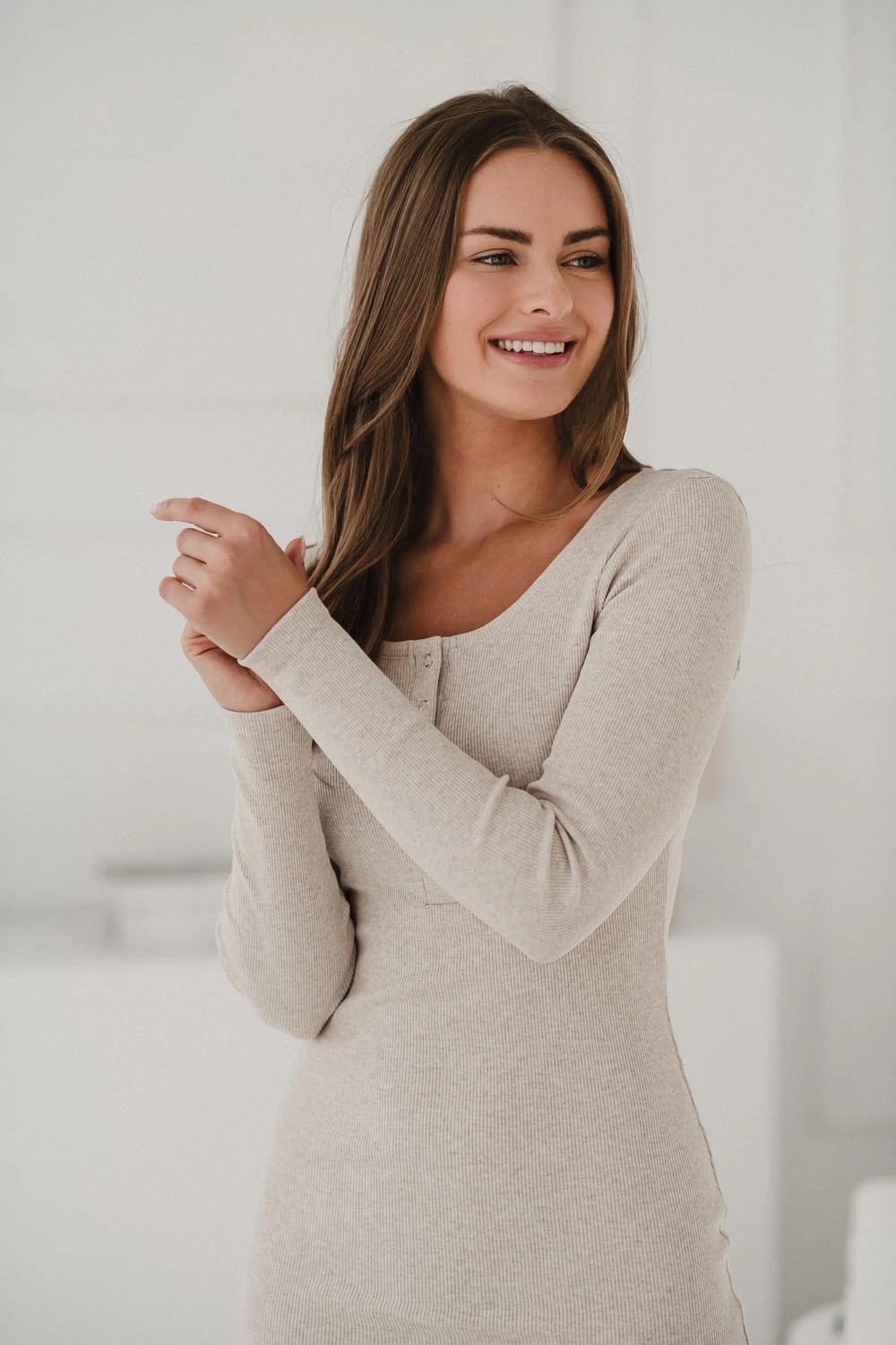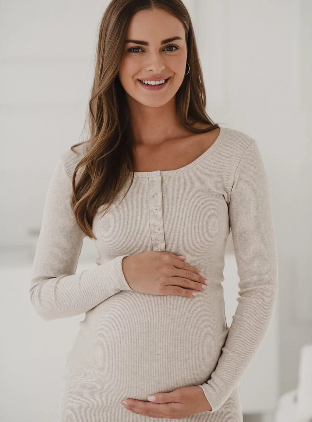 Dzięki praktycznym napom przy dekolcie, sukienka Tummy zapewnia wygodny dostęp do karmienia piersią w każdej sytuacji, a jednocześnie pełni funkcję ozdobną, podkreślając elegancko linię biustu. Prążkowana struktura tkaniny nie tylko dodaje jej modnego charakteru, ale także pozwala na dopasowanie sukienki do zmieniającej się sylwetki.