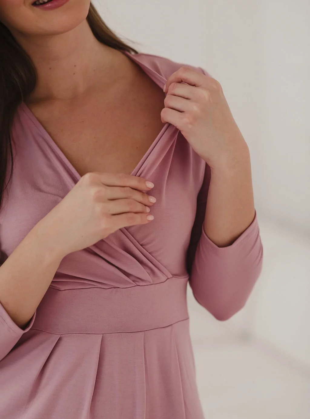 Sukienka ciążowa i do karmienia Grow With Me rękaw 7/8 liliowy róż