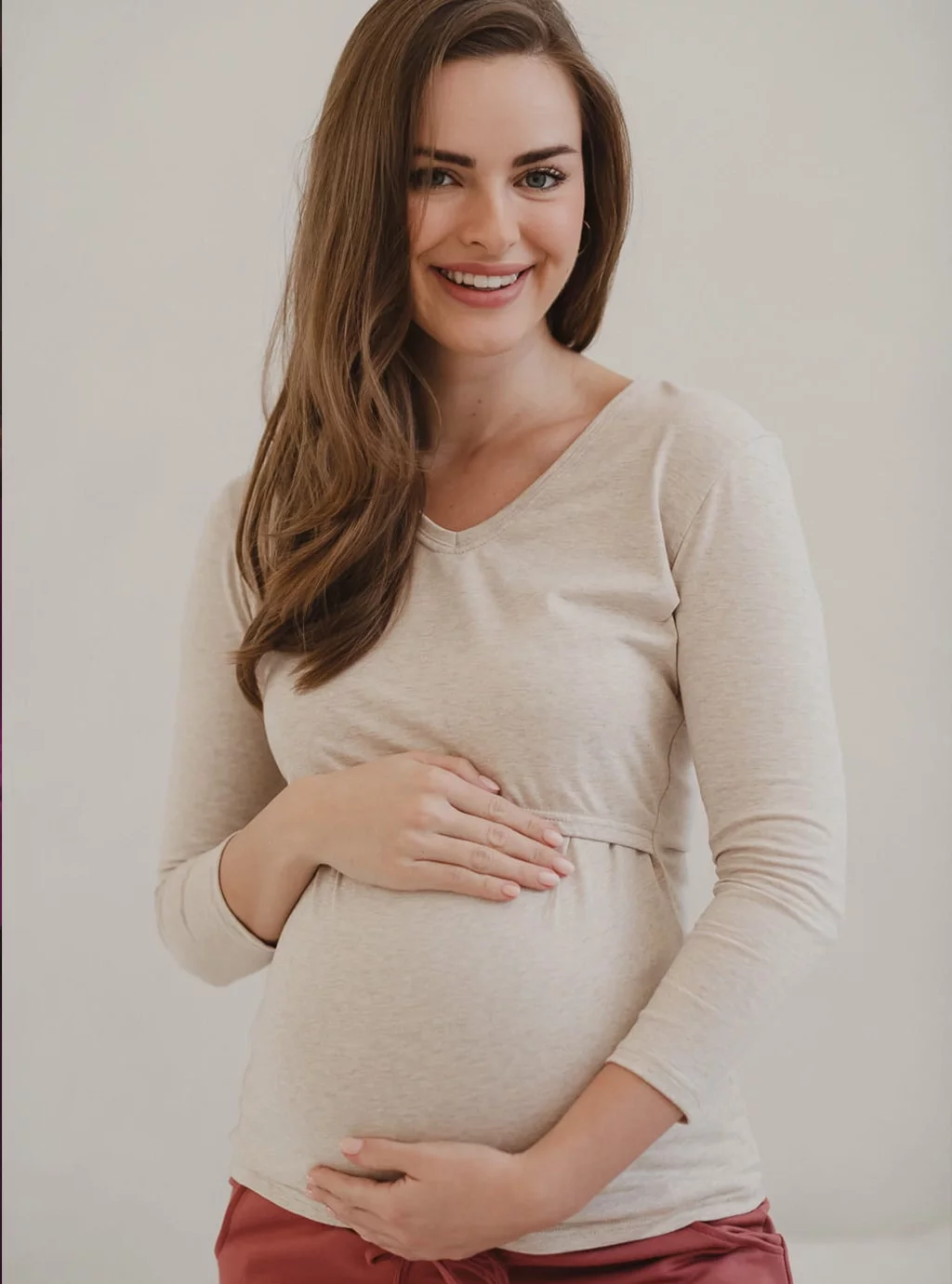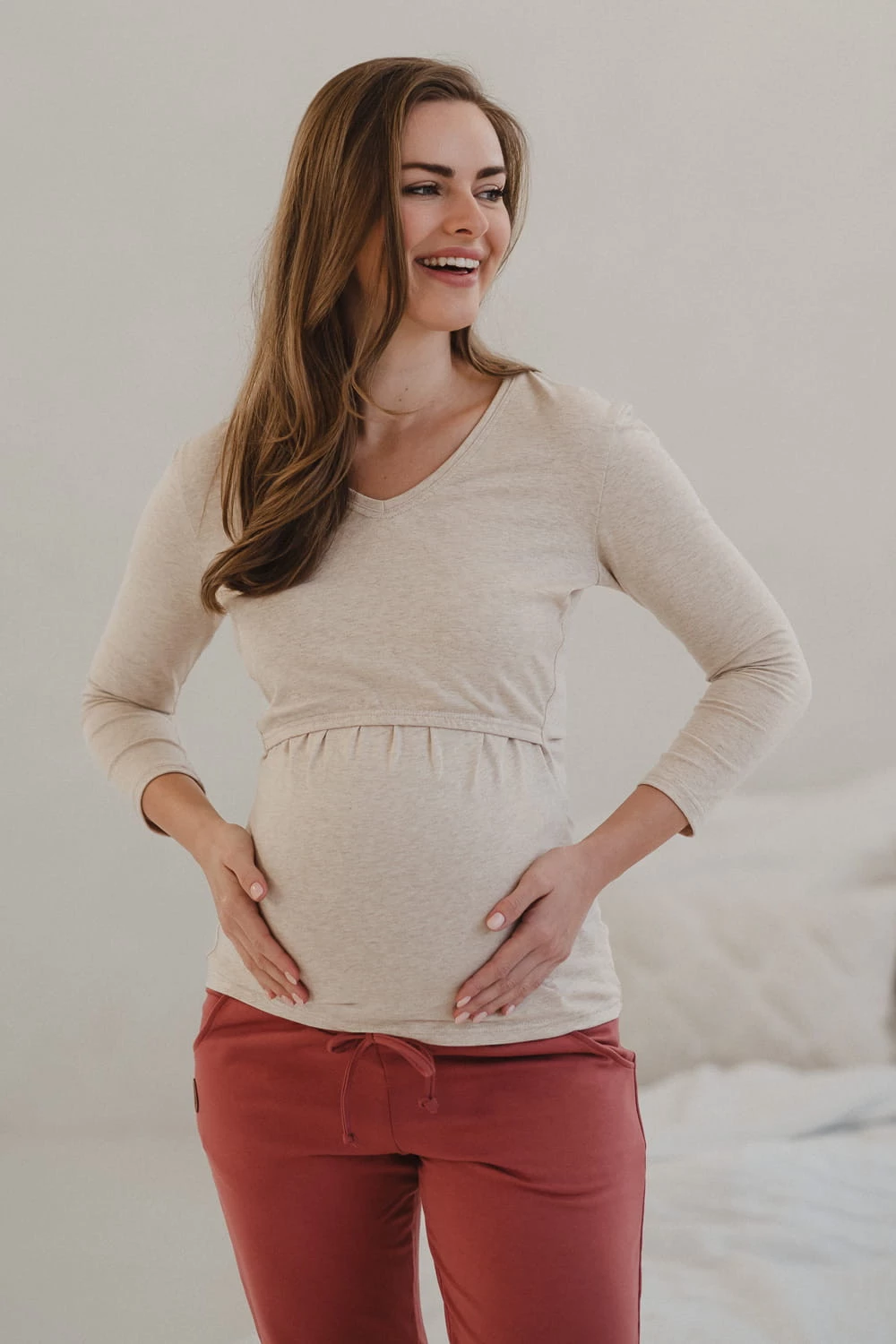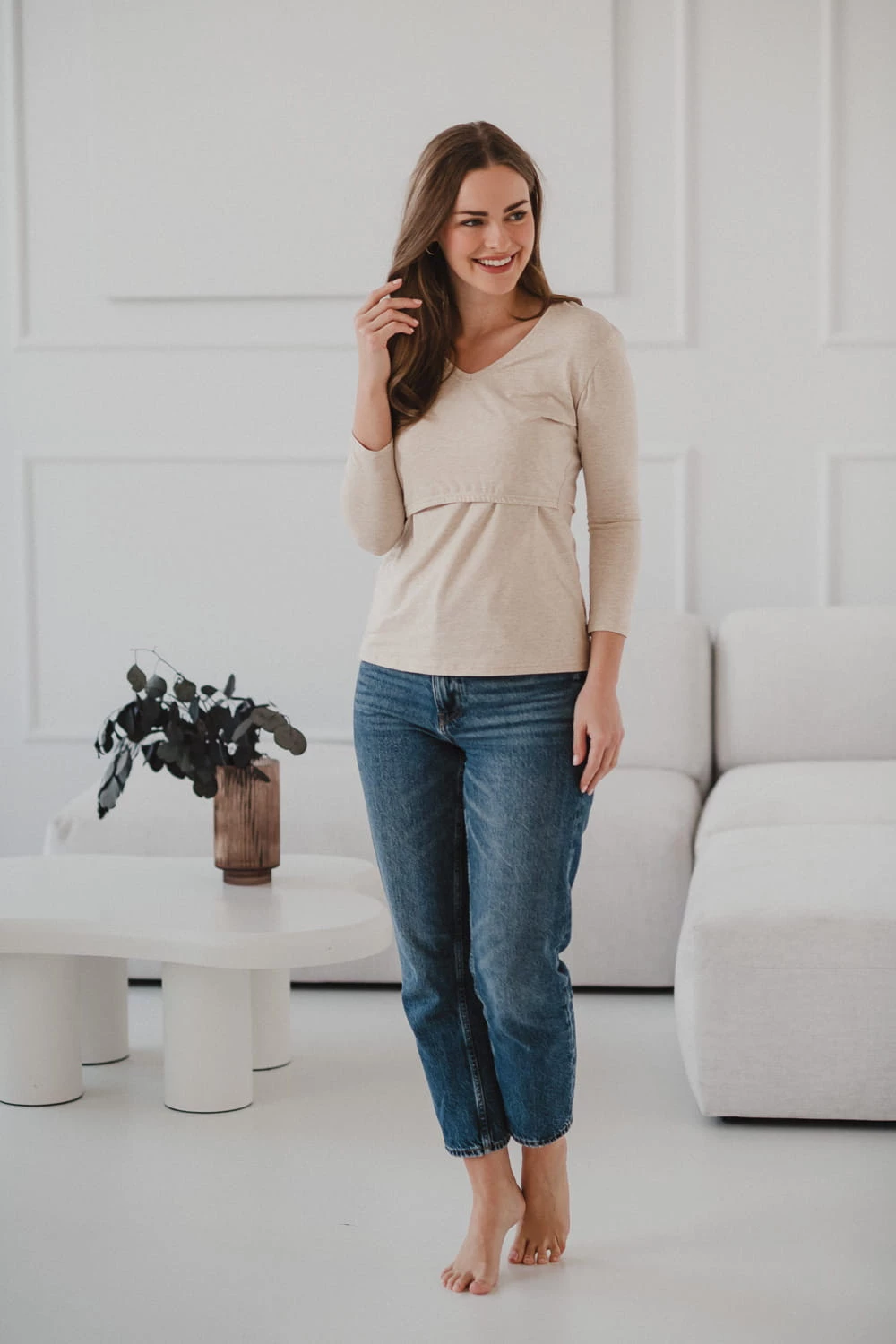 Bluzka ciążowa i do karmienia Milk Shirt latte melange rękaw 7/8
