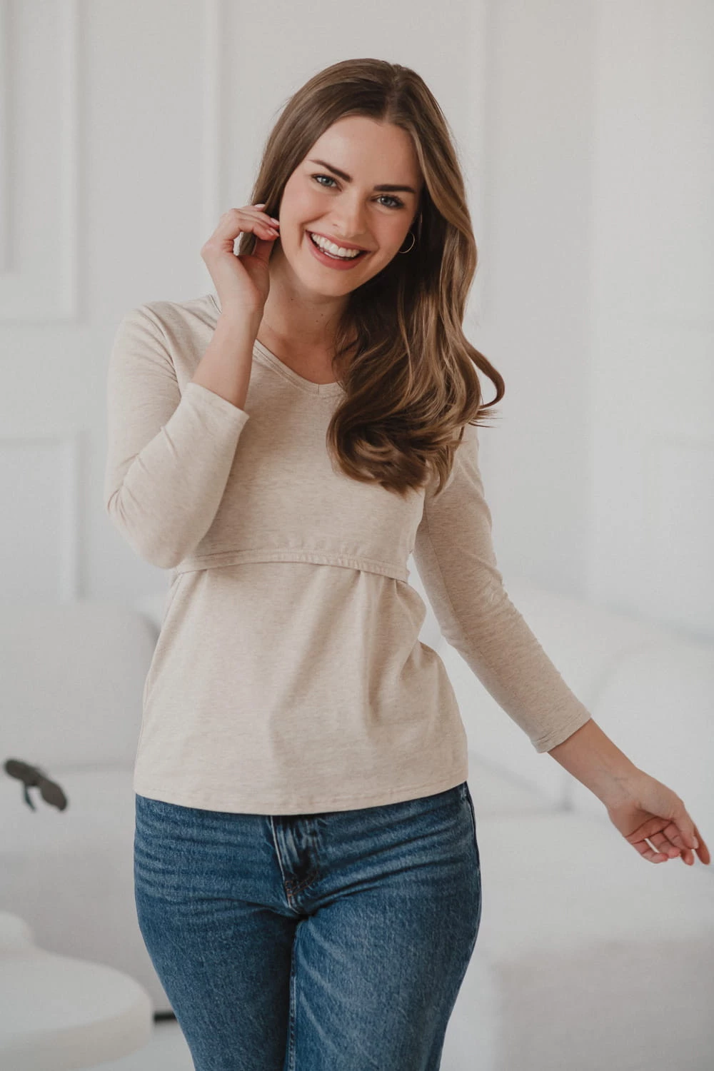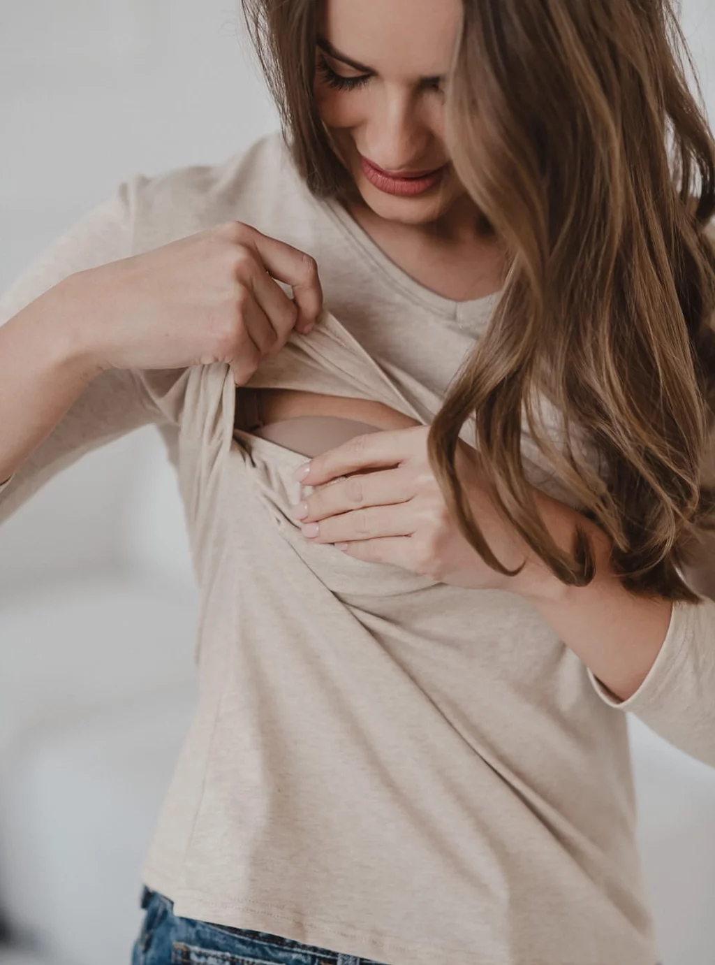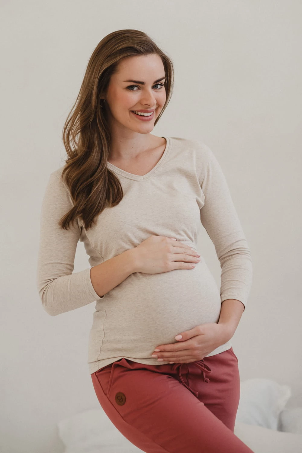 Bluzka ciążowa i do karmienia Milk Shirt latte melange rękaw 7/8