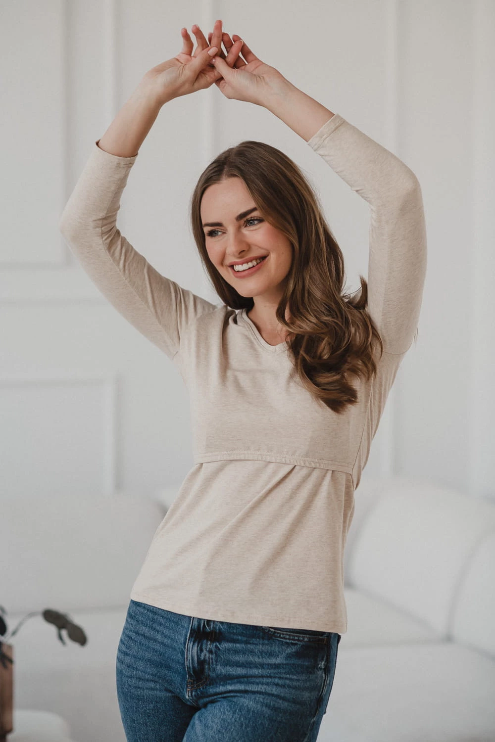 Bluzka ciążowa i do karmienia Milk Shirt latte melange rękaw 7/8