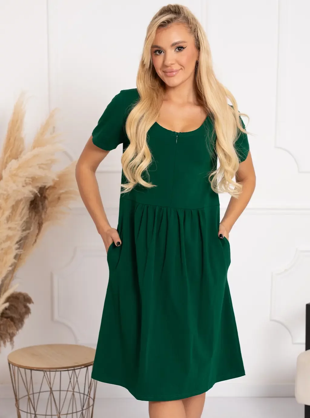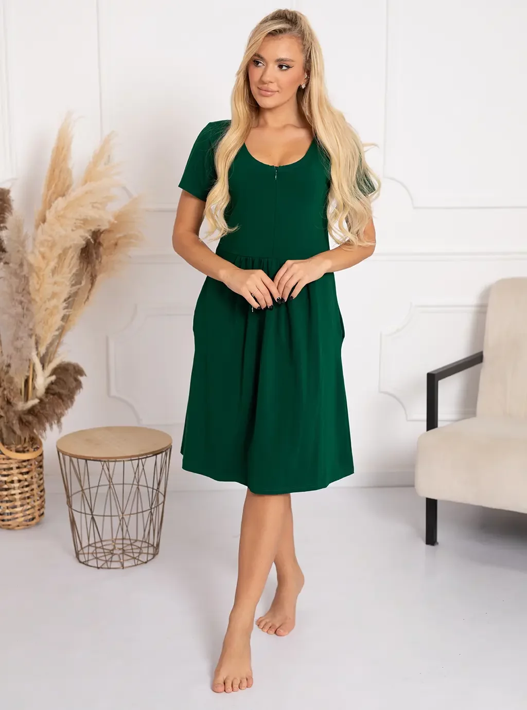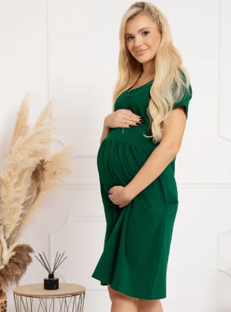 Ładna zieleń w wydaniu ciążowym to kobieca koszula nocna Laura która wyglądem przypomina letnie sukienki z zamkiem błyskawicznym na środku. Bawełniane koszule dla karmiących to wybór dla kobiet które cenią sobie odzież nocną przypominającą ubrania ciążowe. Laura w kolorze butelkowej zieleni to takie właśnie rozwiązanie.