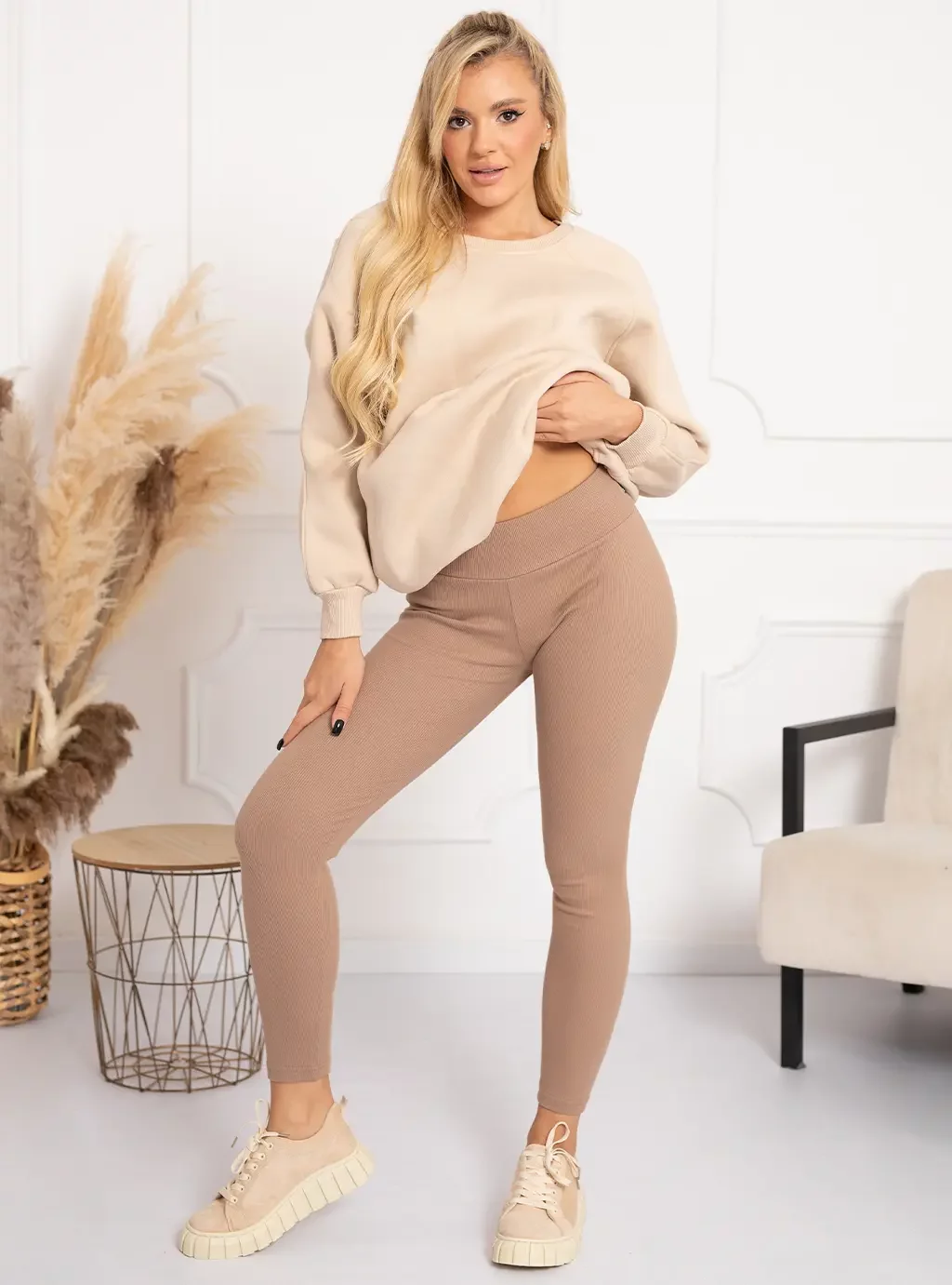 Wysokiej jakości prążkowane damskie legginsy szturmem podbiły serca klientek. Szeroki wybór legginsów pozwala dopasować odpowiedni rozmiar dla każdej pani dzięki czemu prążek podkreśla atuty kobiecej figury w rozmiarze S-6XL. Wygodne prążkowane legginsy możesz założyć do każdego stylu zarówno do sportowych stylizacji z t shirtem jak i do pracy z elegancką koszulą lub bluzką. Legginsy w prążek w kolorze cappuccino staną się stylowym dodatkiem do Twojej kobiecej garderoby.