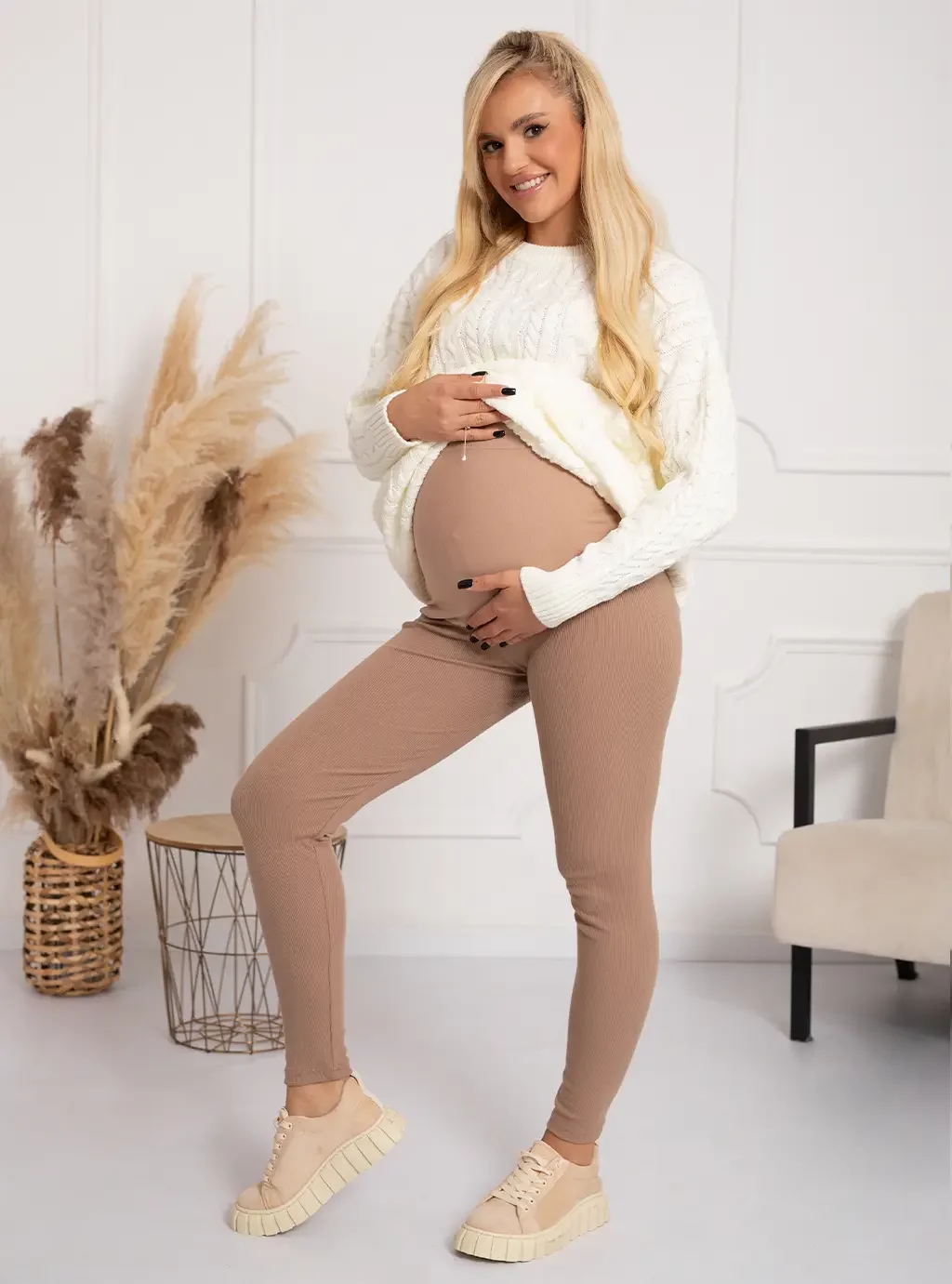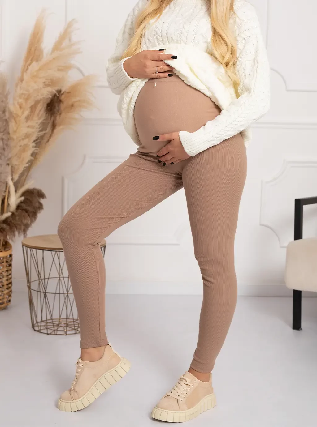 Legginsy ciążowe prążek Paris - Cappuccino