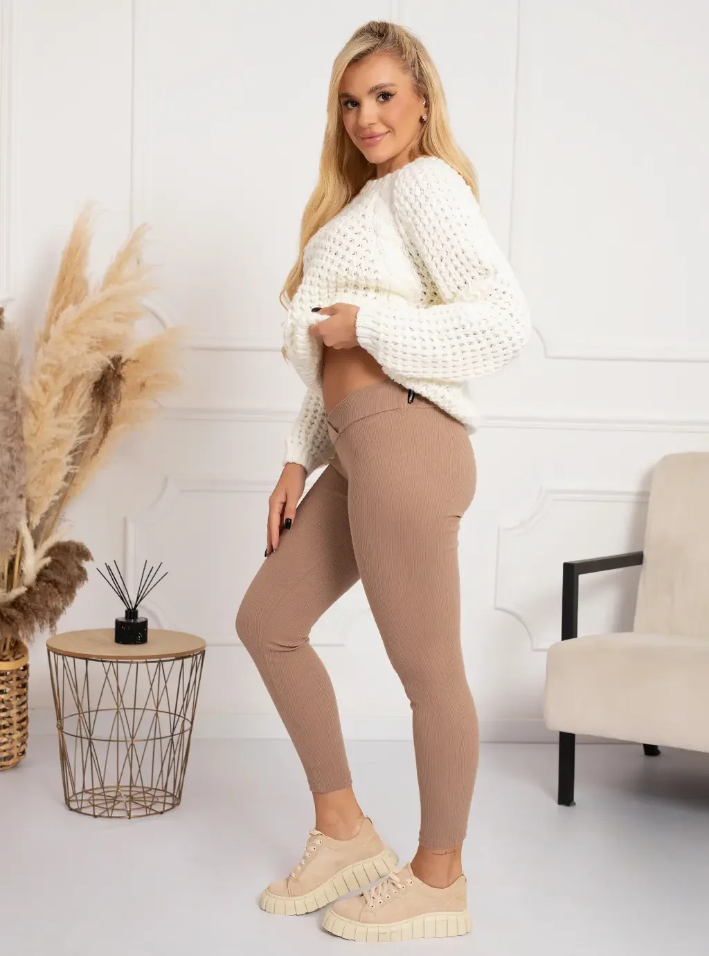 Szukając legginsów ciążowych nie możesz przejść obojętnie obok modelu Lisbona prążek w kolorze cappuccino. Nasze ciążowe legginsy prążkowane damskie od marki Formommy to wysokiej jakości bawełna o gramaturze 270gr/m2, która zapobiegnie prześwitywaniu. Legginsy w prążek to idealny model który możesz nosić od I do III trymestru ciążowej przygody oraz w okresie laktacji, kiedy karmisz maleństwo, wygodne prążkowane legginsy pod brzuch nie uciskają ciała które się powoli regeneruje. Wybierz legginsy prążek cappuccino i ciesz się ich jakością długi czas.