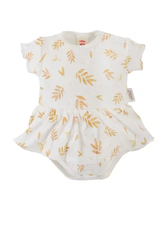 Bardzo fajne rozwiązanie dla niemowlaka dziewczynki klasyczne ubranko idealne czyli sukienkobody w złote liście z kolekcji Li&Lu. Dziewczęce body bezpieczne dla wrażliwej skóry dziecka zapinane na bezniklowe napy koło szyjki i w kroku to proste rozwiązanie które ułatwi ubieranie i rozbieranie maluszka. Fajny pomysł na letnie stylizacje w ciepłe dni.