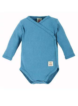 Wybierz proste zakładanie ubranka i szybka zmianę pieluszki - które gwarantuje to niemowlęce kopertowe body w niebieskim kolorze.