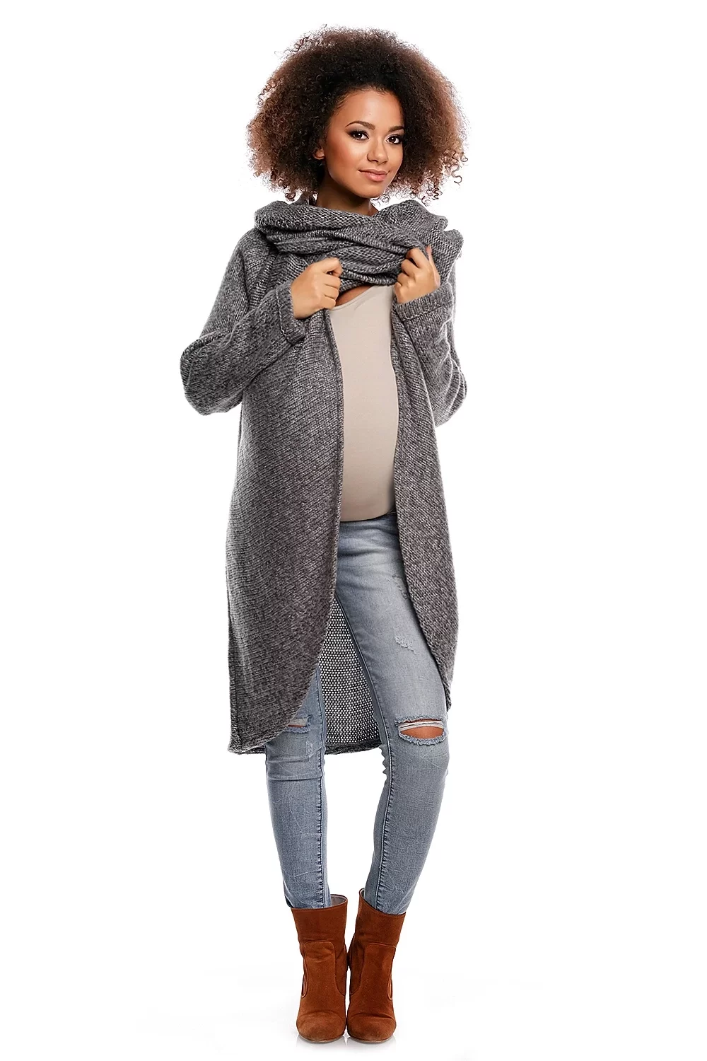 PUCHATY SWETER GOLF DO KARMIENIA CIĄŻA CIEMNY SZARY