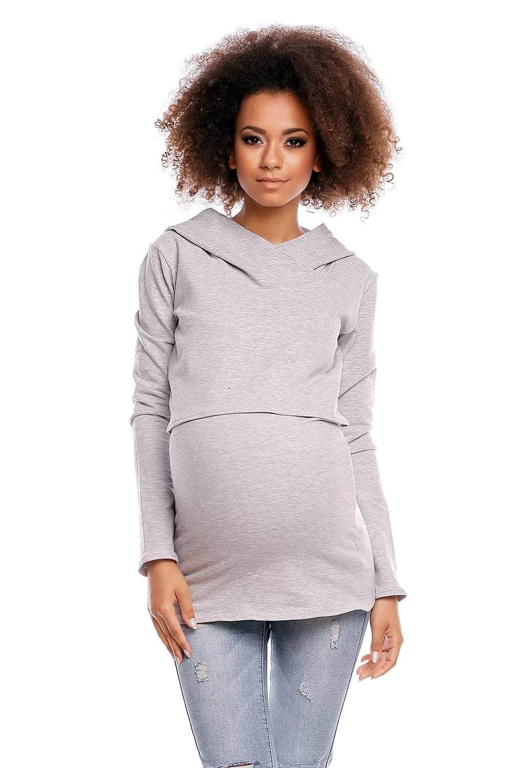 BLUZA DO KARMIENIA NA CIĄŻE KAPTUR JASNY SZARY