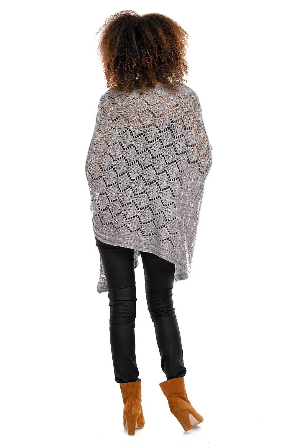 ELEGANCKIE AŻUROWE PONCHO CIEPLUTKIE JASNY SZARY