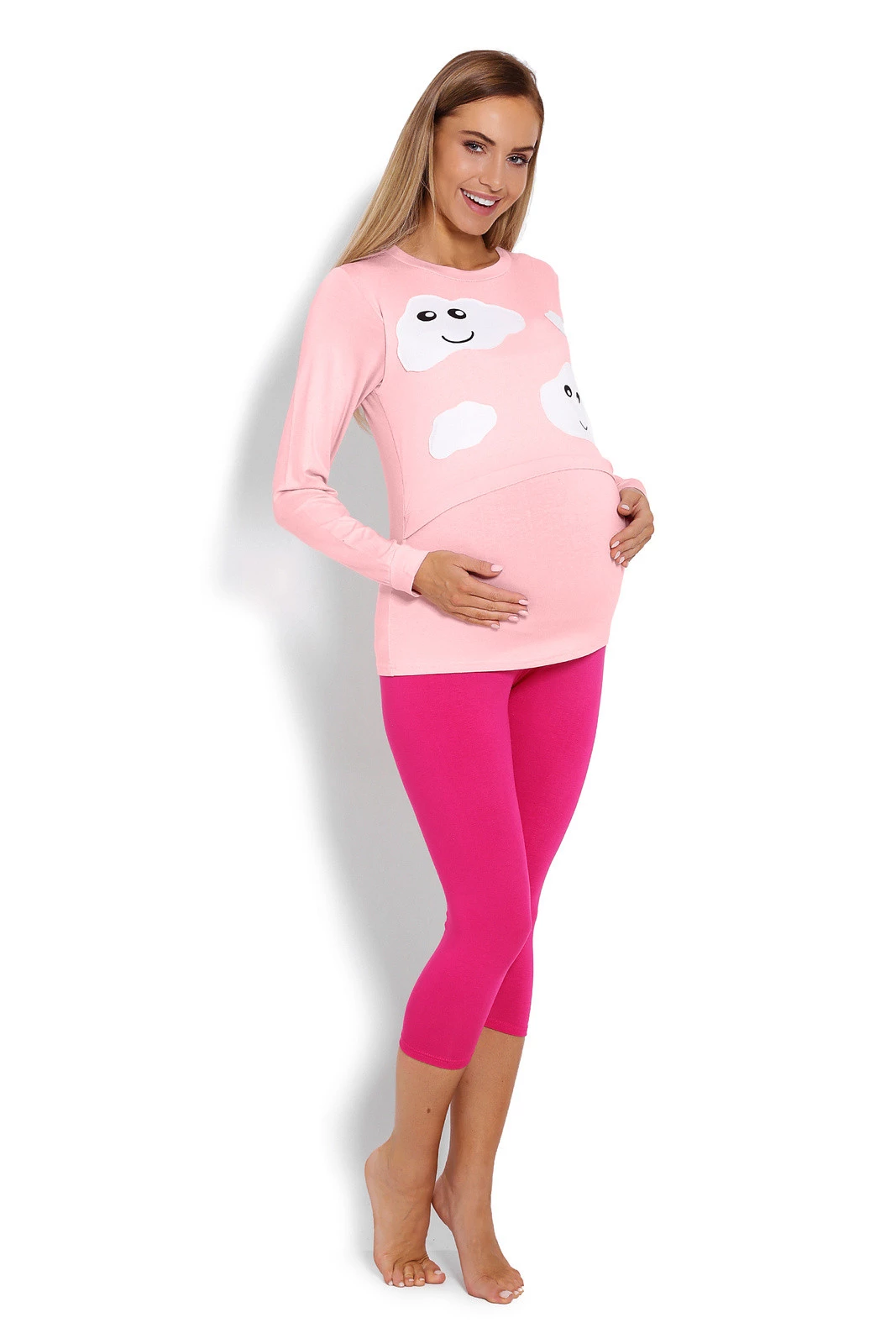 Szczegóły: Piżama ciążowa i do karmienia. Legginsy z bez uciskowym panelem. Można nosić również po ciąży. Góra z motywem chmurek.