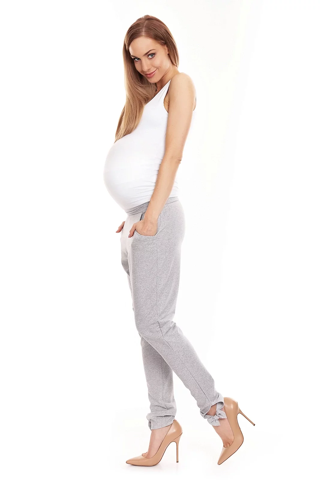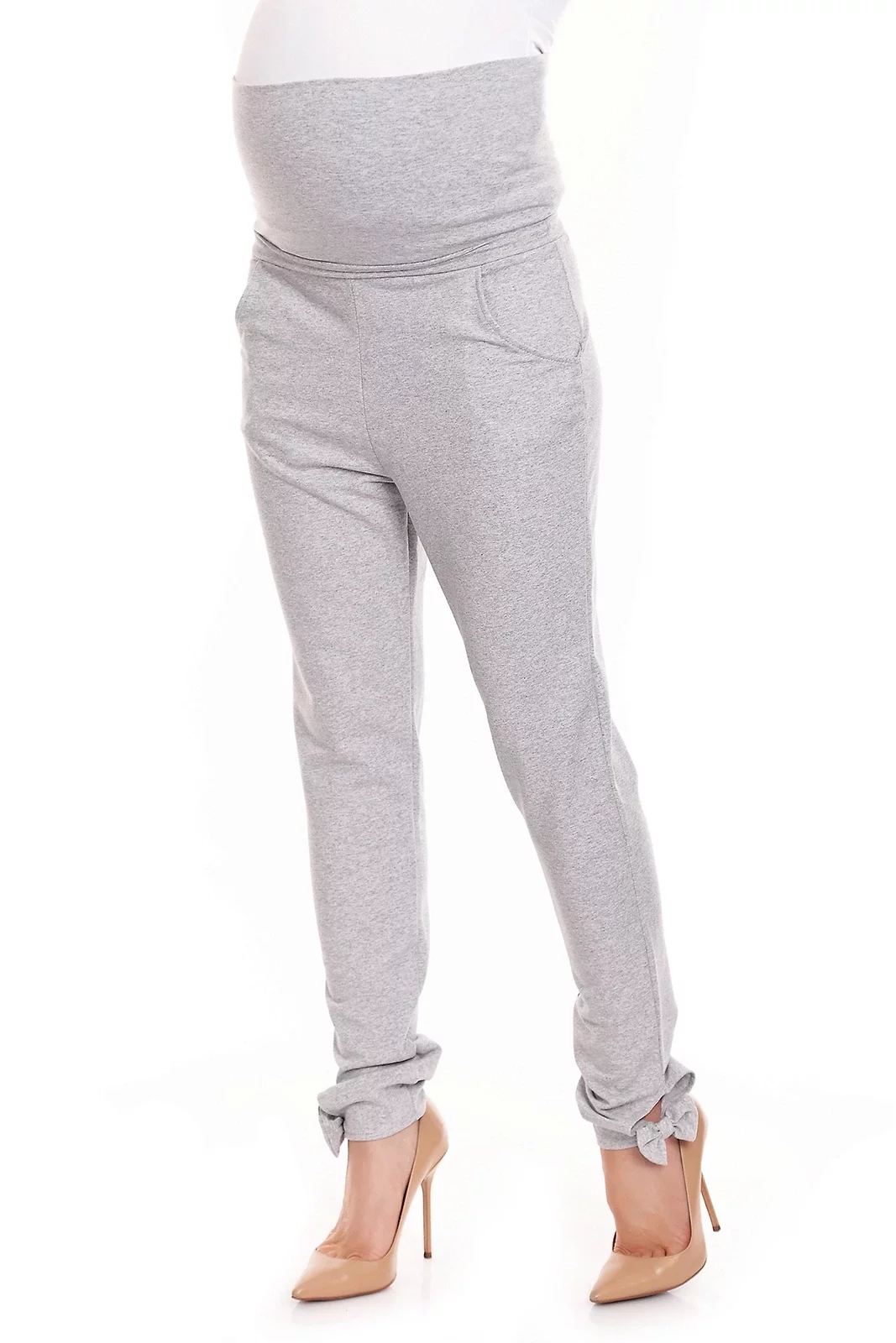 SPODNIE CIĄŻOWE DRESOWE Z PASEM BEZUCISKOWYM KOKARDKI SZARE