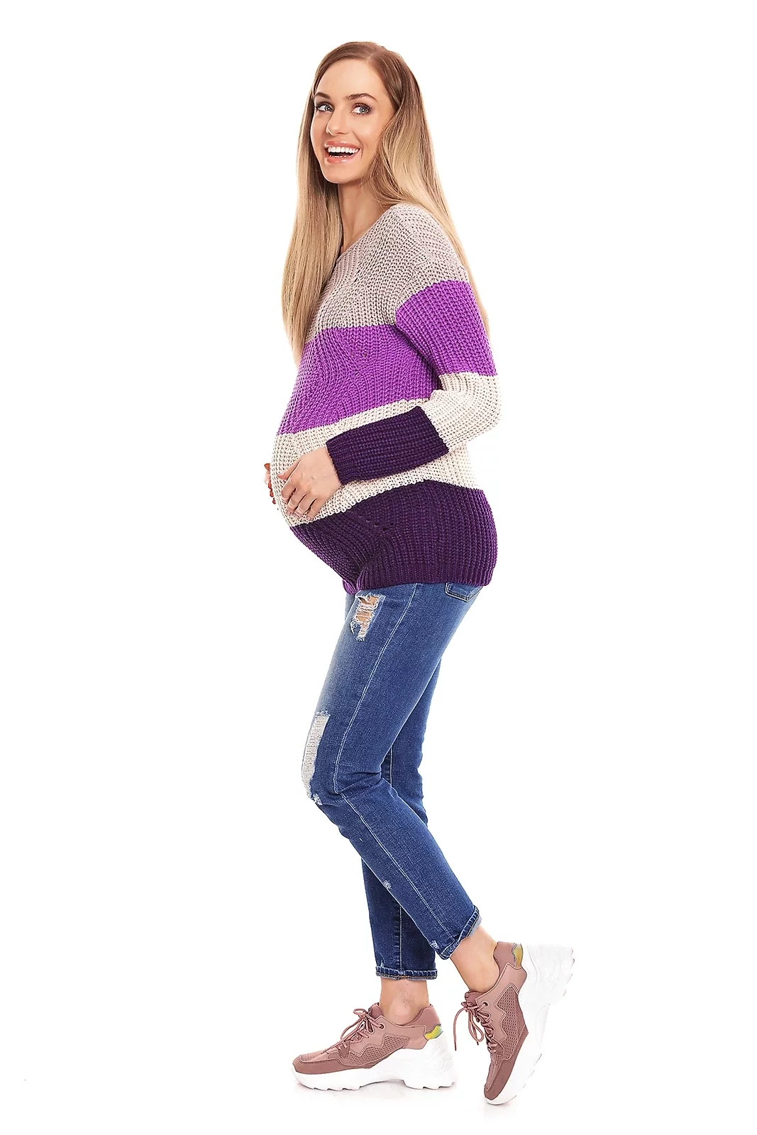 SWETER SZEROKIE PASY AŻUROWY MOTYW FIOLET