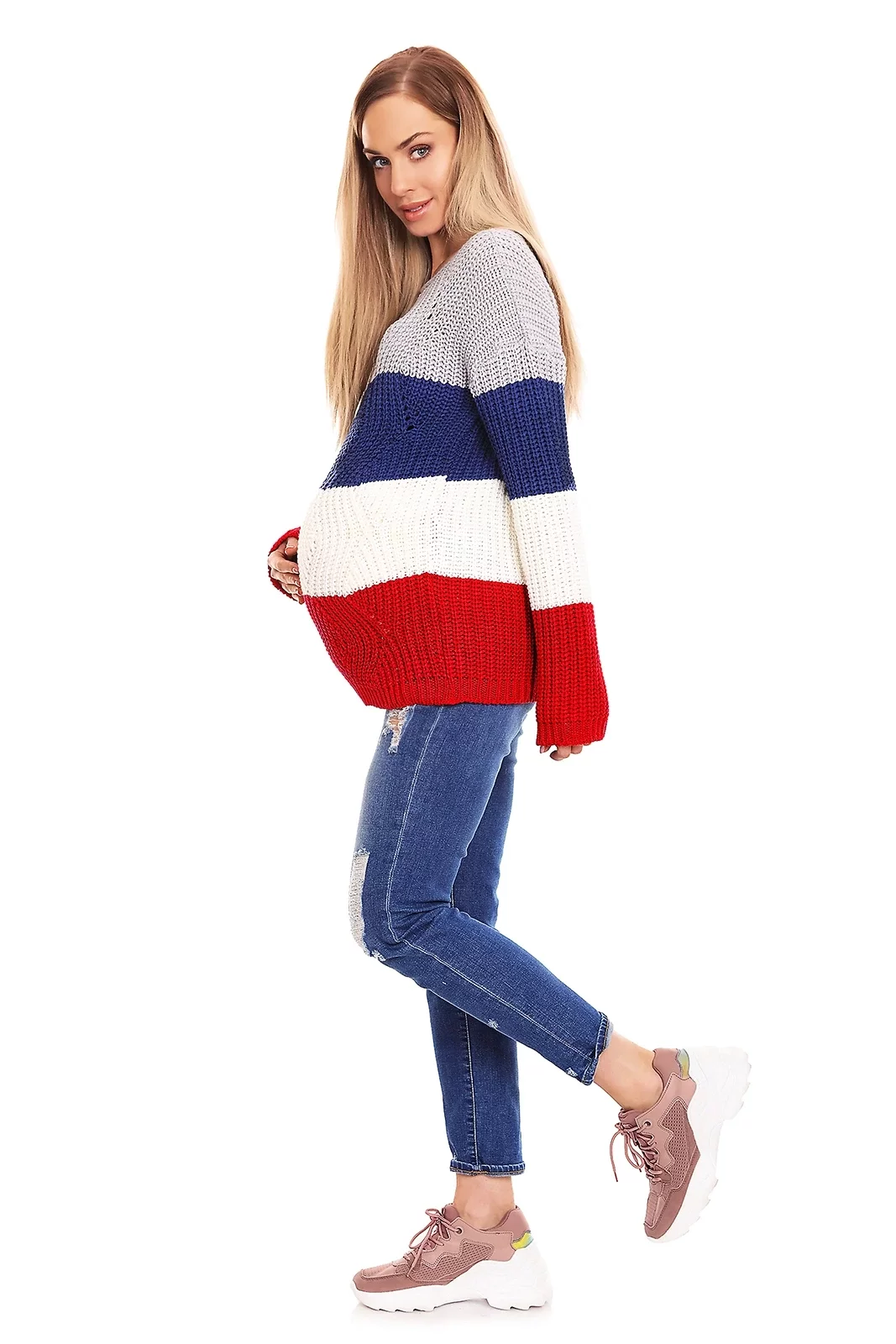 SWETER SZEROKIE PASY AŻUROWY MOTYW JEANS