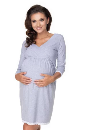 Koszula nocna ciążowa z ozdobną gipiurą.