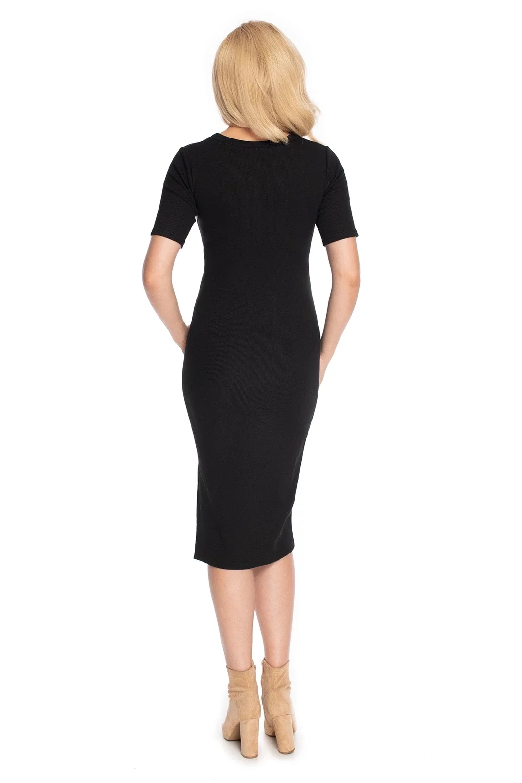 Idealna czarna sukienka ciążowa, którą możesz założyć zarówno w ciąży od I do III trymestru jaki i po ciąży kiedy karmisz maleństwo. Modny bawełniany materiał w elastyczny prążek fajnie się naddaje i otula ciążowy brzuszek od chwili gdy go założysz na siebie. Sukienka ciążowa podkreśla Twoją kobiecą sylwetkę, a klasyczny krój typu basic pozwala na wyjątkowe stylizacje zarówno do pracy ze szpilkami jak i na co dzień z wygodnymi trampkami. Moda ciążowa w okresie ciąży nie musi być nudna! Ubrania ciążowe w stylu basic to podstawa wielu modowych stylizacji. Poznaj Swój ciążowy look razem z nami!