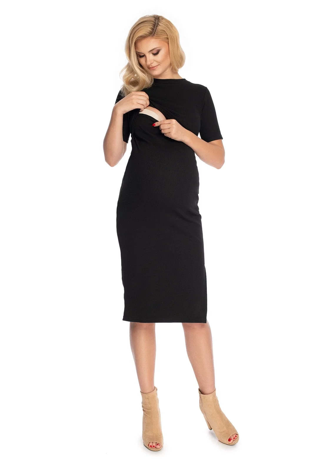 Prążkowana sukienka ciążowa z wygodnym panelem do karmienia