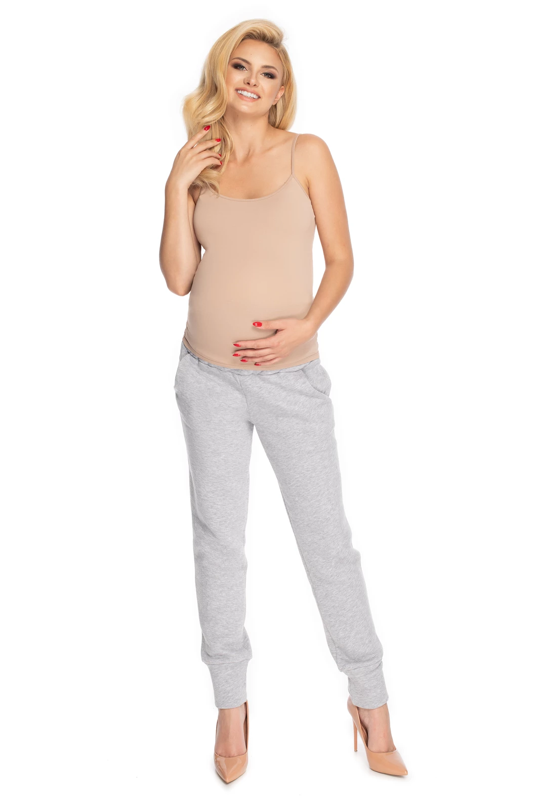 SPODNIE CIĄŻOWE DREOWE Z PASEM BEZUCISKOWYM SZARE