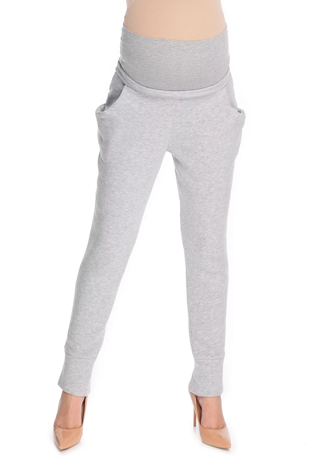 SPODNIE CIĄŻOWE DRESOWE Z PASEM BEZUCISKOWYM SZARE