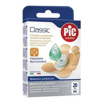 Plastry Classic to mix opatrunków o różnych kształtach i rozmiarach do jak najlepszego dopasowania do typu i miejsca rany. Zawierają antybakteryjną chlorheksydynę.