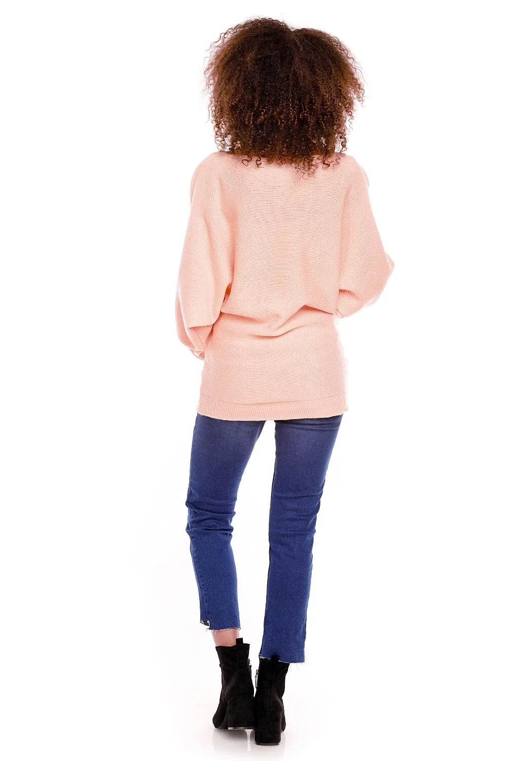 Miękki sweter oversize o kroju nietoperza to hit obok którego żadna z Pań nie może przejść obojętnie. Fajny krój który z powodzeniem zastąpi luźniejszy sweter ciążowy bez trudu dopasowując się do rosnącego brzucha ciążowego. Wygodne swetry ciążowe zostaną u Ciebie również po ciąży, dlatego warto zainwestować w ten modowy hit! Styl casual nigdy nie przemija, a nasz cieplutki sweter w kolorze łososiowym z długim rękawem będzie idealny na chłodniejsze dni.