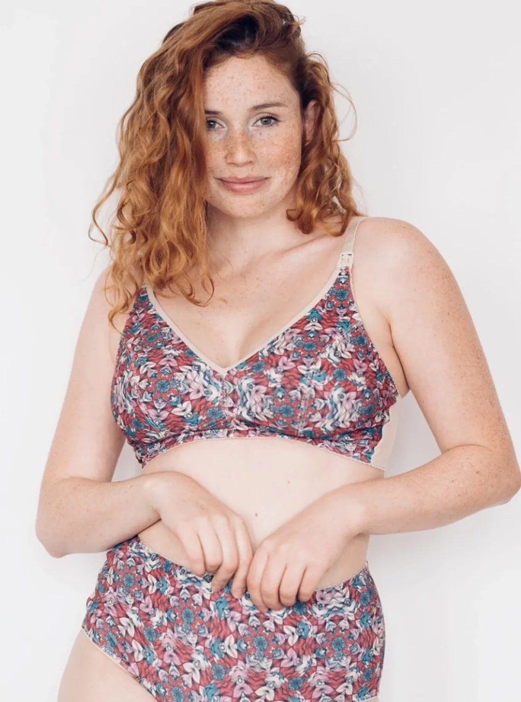 Kolorowy miękki biustonosz do karmienia dla mam bez fiszbin. Z myślą o ciąży i tym pierwszym okresie po porodzie Momtobe stworzyło bawełniany ciążowy, idealny biustonosz do karmienia i do snu. Biustonosz ciążowy i do karmienia który może przydać się przez 24 godziny na dobę dla Twojego komfortu i wygody oraz dyskretnego karmienia. Miękka kolorowa bawełna w kwiaty w odcieniach bordo która zachowuje się jak druga skóra, nie uciska jak usztywniane biustonosze do karmienia, dlatego jest to najlepszy biustonosz do karmienia Twojej małej pociechy. Doceń doskonałą funkcjonalność biustonoszy i postaw na wysokiej jakości staniki do karmienia piersią w kolorowe stylowe wzory idealne do sportowych codziennych stylizacji.