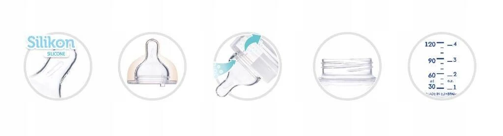 - Szeroki otwór ułatwia przygotowywanie pokarmu i mycie butelki.