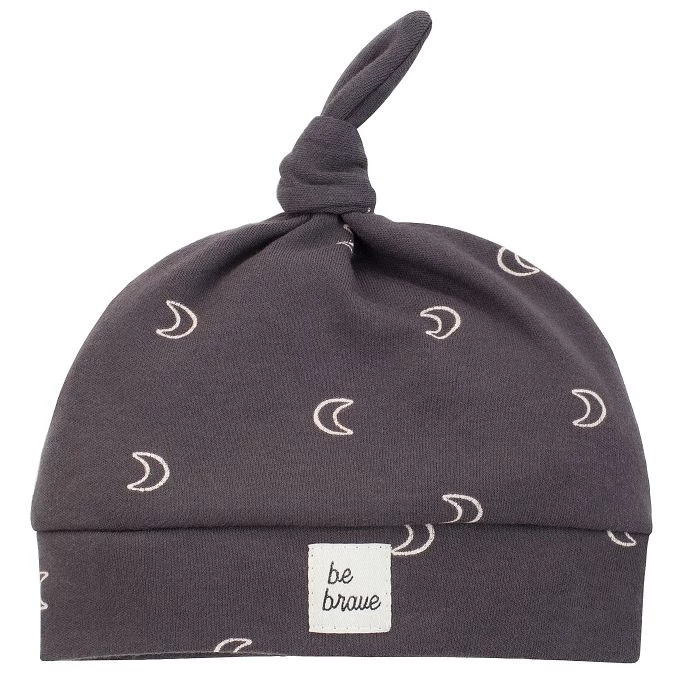 - Czapeczka niemowlęca z księżycami i supełkiem „BE BRAVE” | Kolekcja Dreamer by Pinokio