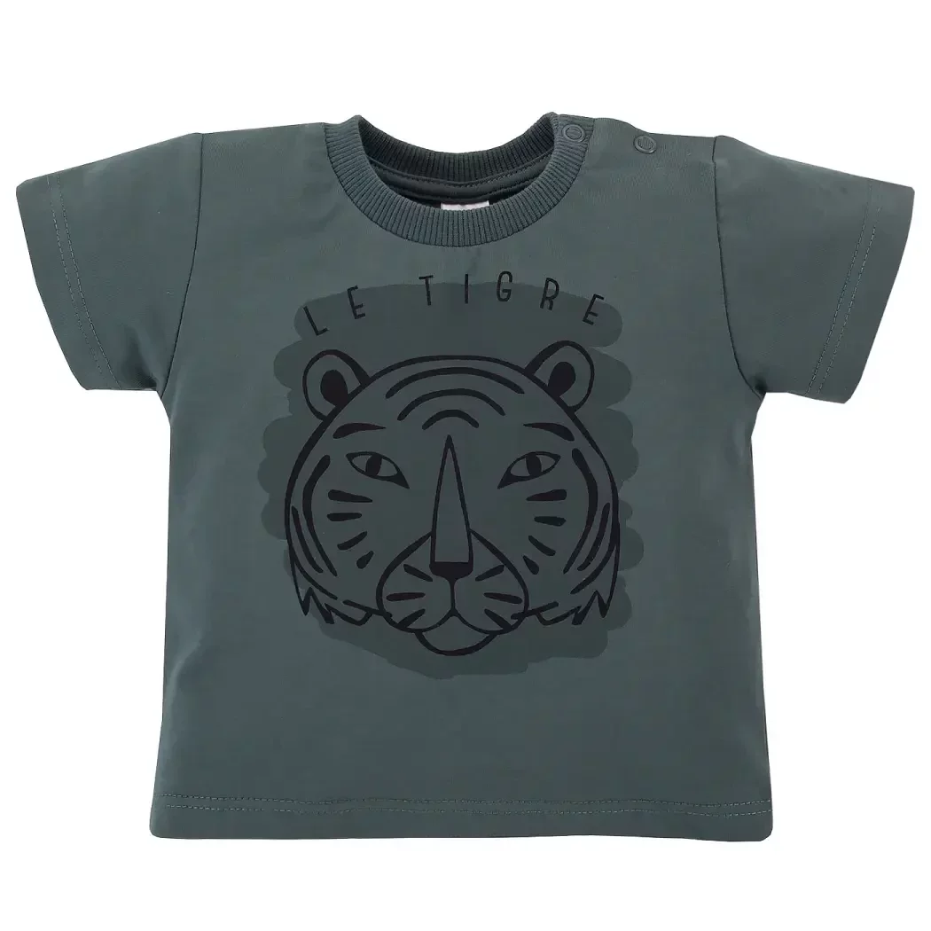 T-shirt Le Tigre w modnym odcieniu ciemnej zieleni to prawdziwy must have w garderobie małego odkrywcy. Uszyty z miękkiej, oddychającej dzianiny, gwarantuje wygodę i swobodę ruchów podczas codziennych zabaw.