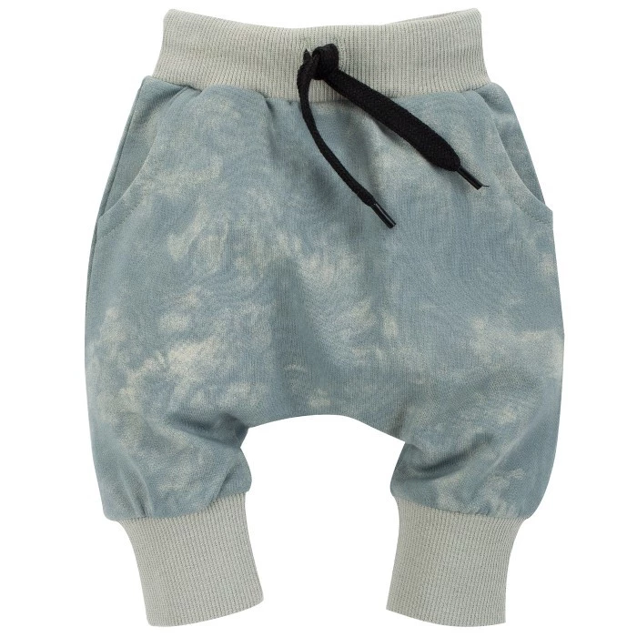 Stylowe i wygodne pumpki Fun Time uszyte zostały z miękkiej, 100% bawełnianej dresówki w wyjątkowy zielono-niebieski wzór tie-dye. Spodenki posiadają praktyczne kieszenie po bokach, w których maluch może schować swoje drobne skarby. Nogawki zakończone są efektownymi ściągaczami, które utrzymują ubranko w odpowiednim miejscu i dodają całości sportowego charakteru.
