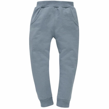 Spodnie z kolekcji Fun Time, które łączą wygodę, ponadczasowy styl i funkcjonalność na co dzień. Uszyte z 100% miękkiej, oddychającej bawełnianej dzianiny w stalowym kolorze, są przyjazne dla skóry dziecka.