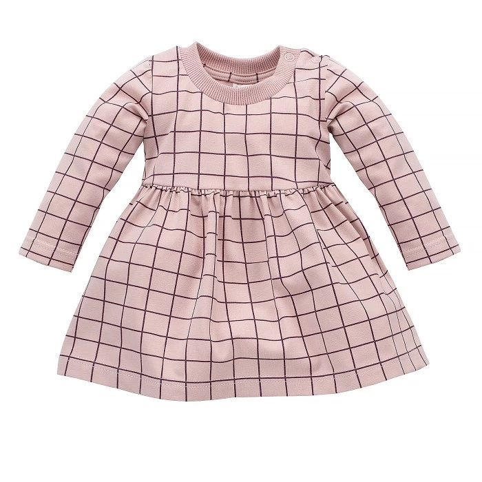 Sukienka Z Długim Rękawem Romantic W Kratkę Różowy
