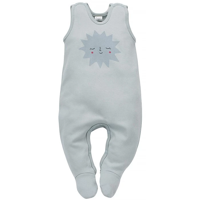 Śpioszki niemowlęce Romantic – niebieskie, 100% bawełna z nadrukiem słoneczka