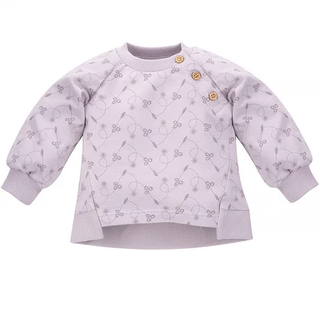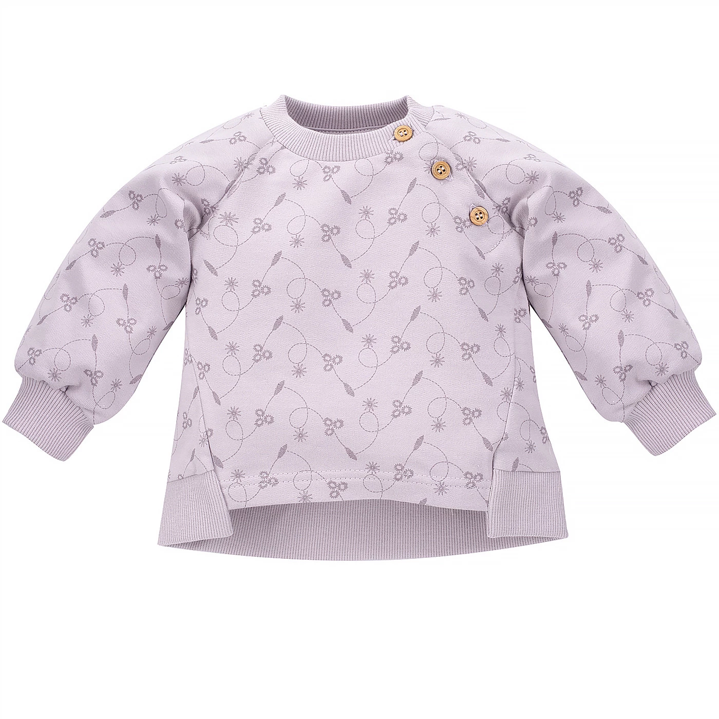 Dla łatwego ubierania bluza jest rozpinana na 3 ekologiczne, drewniane guziczki umieszczone z przodu na lewym ramieniu. Rękawy i dół wykończone ściągaczem gwarantują, że ubranko dobrze przylega do ciała, chroniąc przed chłodem i wiatrem. Dłuższy tył dodatkowo zabezpiecza plecy dziecka nawet podczas intensywnej zabawy.