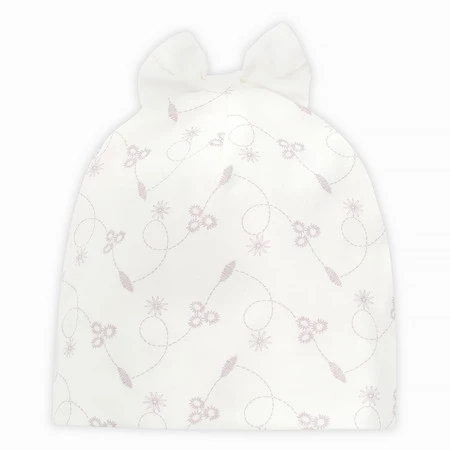 Wykonana z wysokiej jakości, miękkiej dzianiny w kolorze écru z subtelnym kwiatowym wzorem, zapewnia ciepło i ochronę podczas chłodniejszych dni. Bawełna z dodatkiem elastanu sprawia, że czapka doskonale dopasowuje się do główki niemowlęcia – nie uciska, łatwo się zakłada i nie przesuwa się podczas noszenia.