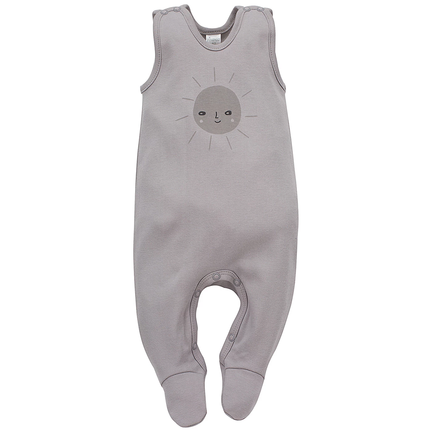 Śpioszki niemowlęce Hello! – szare, 100% bawełna z nadrukiem słoneczka