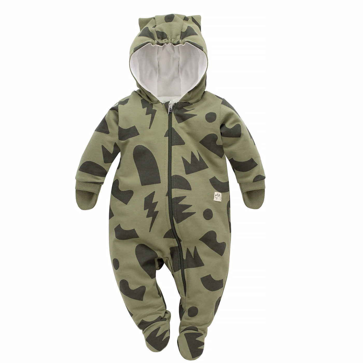 Zielony kombinezon niemowlęcy z geometrycznym nadrukiem – trzywarstwowy | idealny na wiosnę i jesień