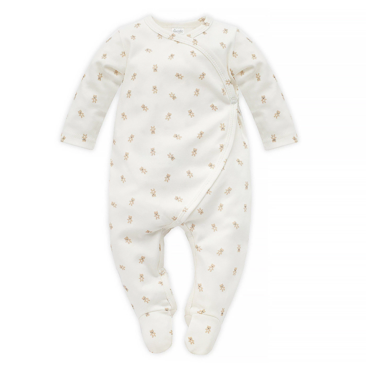 Model w kolorze écru ozdobiony został uroczym nadrukiem malutkich, beżowych misiów. Nadruk wykonano trwałą i bezpieczną metodą farb wodnych, dzięki czemu jest odporny na częste pranie oraz codzienne użytkowanie.