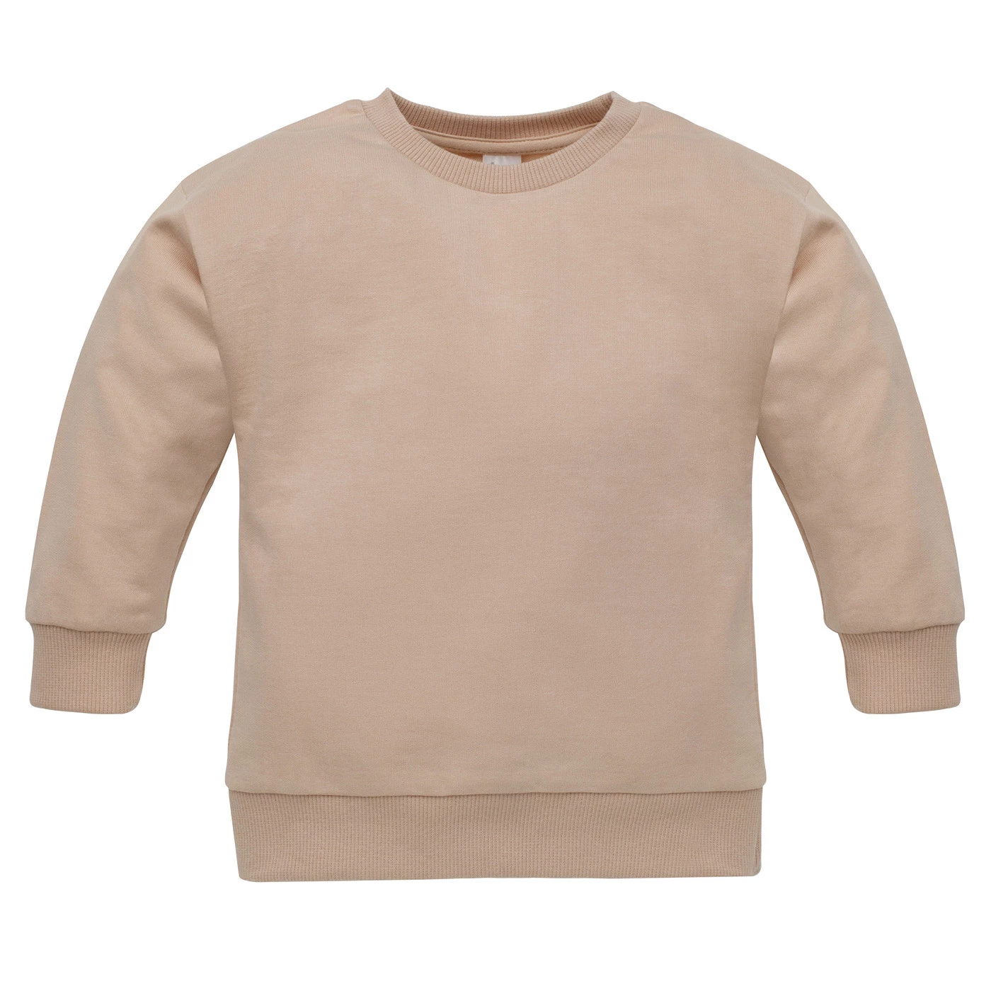 Praktyczna i stylowa bluza z długim rękawem z kolekcji Lovely Day została uszyta z delikatnej, 100% bawełnianej dresówki w modnym, beżowym kolorze. Materiał jest miękki, przewiewny i przyjazny dla skóry dziecka, dzięki czemu bluza sprawdzi się zarówno w domu, jak i podczas zabawy na świeżym powietrzu.