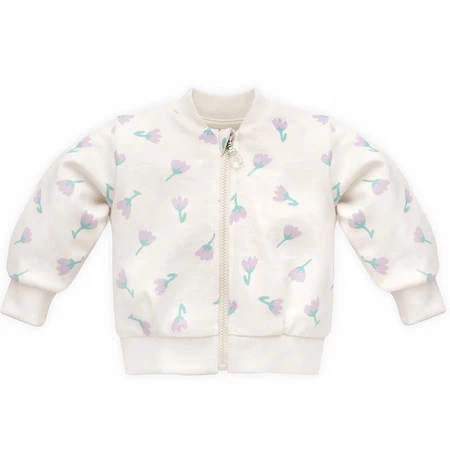 - Bluza ecru z nadrukiem krokusów – kolekcja Lilian | Rozpinana na suwak, polska produkcja