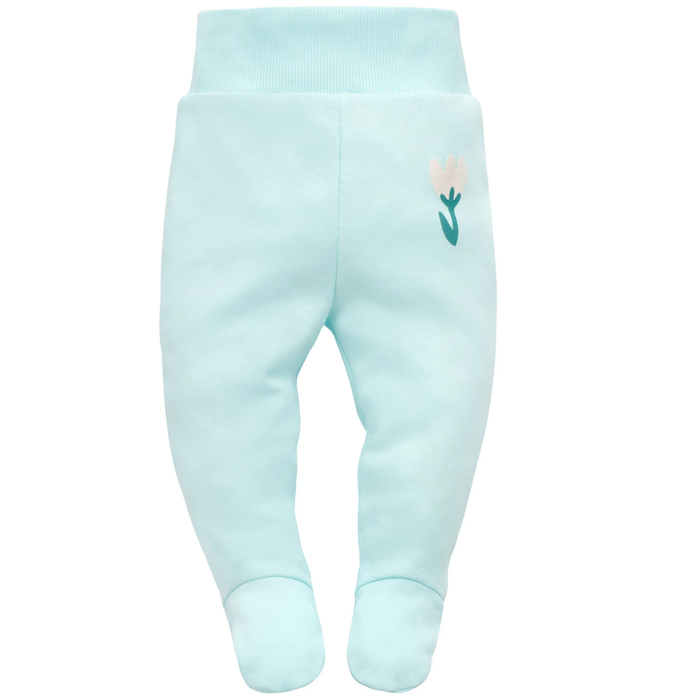 Półśpiochy niemowlęce miętowe z nadrukiem kwiatuszka – kolekcja Lilian | 100% bawełna