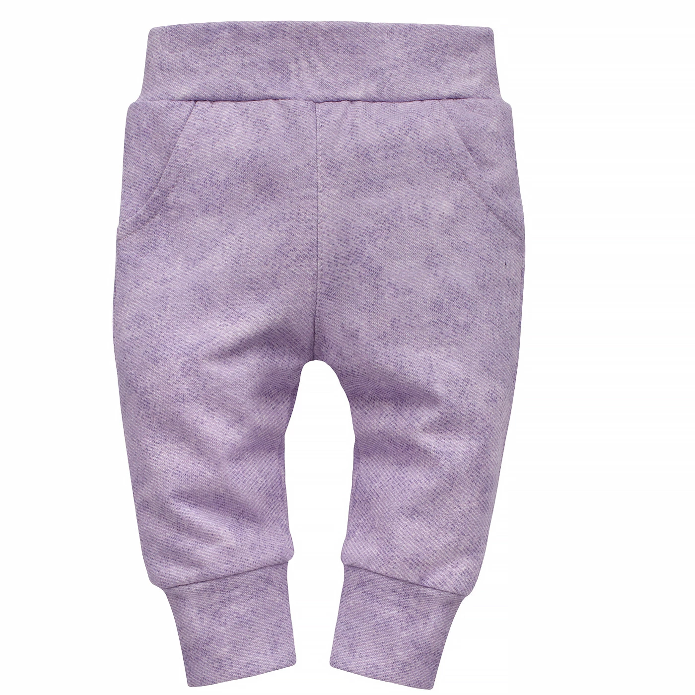 Spodnie z kolekcji Lilian, które łączą wygodę, modny design i bezpieczeństwo użytkowania. Uszyte z 100% miękkiej, oddychającej bawełny w odcieniu fioletu z ciekawym printem.
