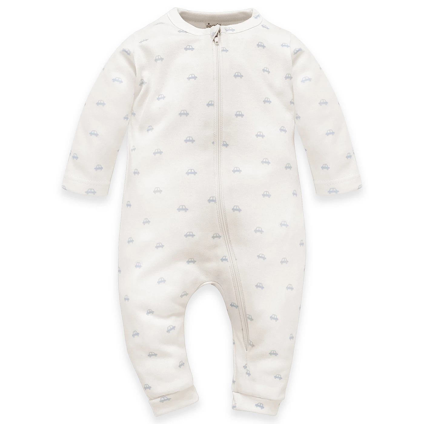 Pajac Niemowlęcy Bs Na Suwak Z Długim Rękawem Lovely Day Autka Ecru
