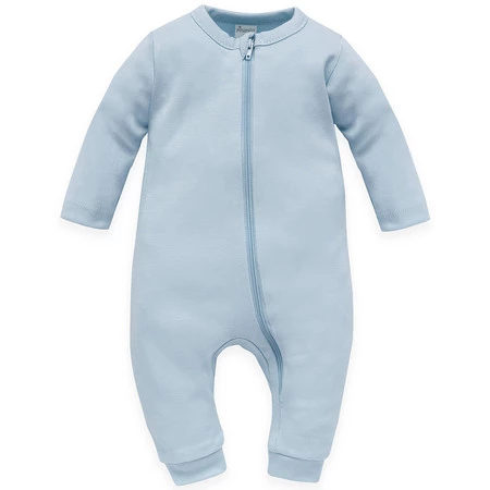 Pajacyk zapinany jest na suwak, co pozwala na szybkie i wygodne przebieranie dziecka. Zamek został dodatkowo zabezpieczony – przy szyi ochronną łezką, a od wewnętrznej strony miękką plisą, dzięki czemu nie podrażnia delikatnej skóry niemowlęcia.