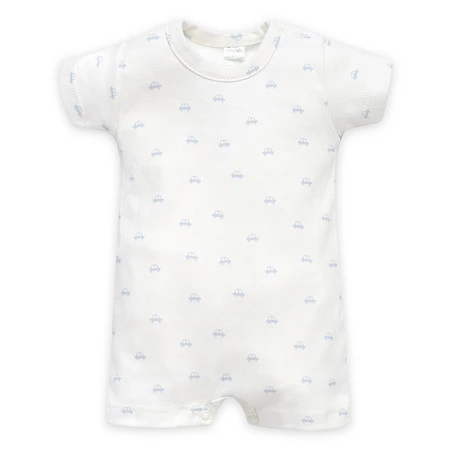 Letni rampers dla chłopca – Ecru w Autka Lovely Day | 100% Bawełna Premium